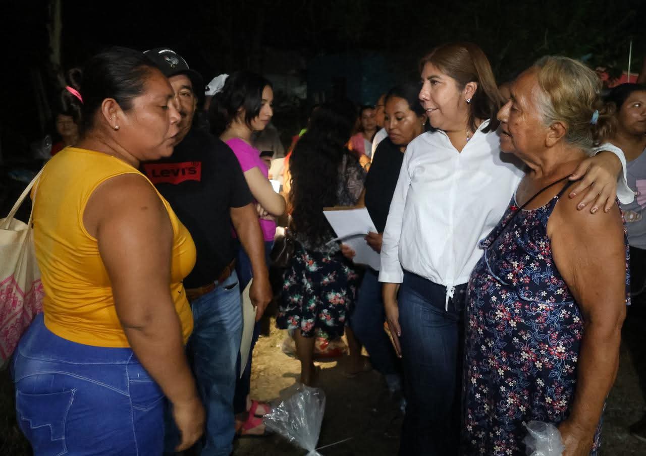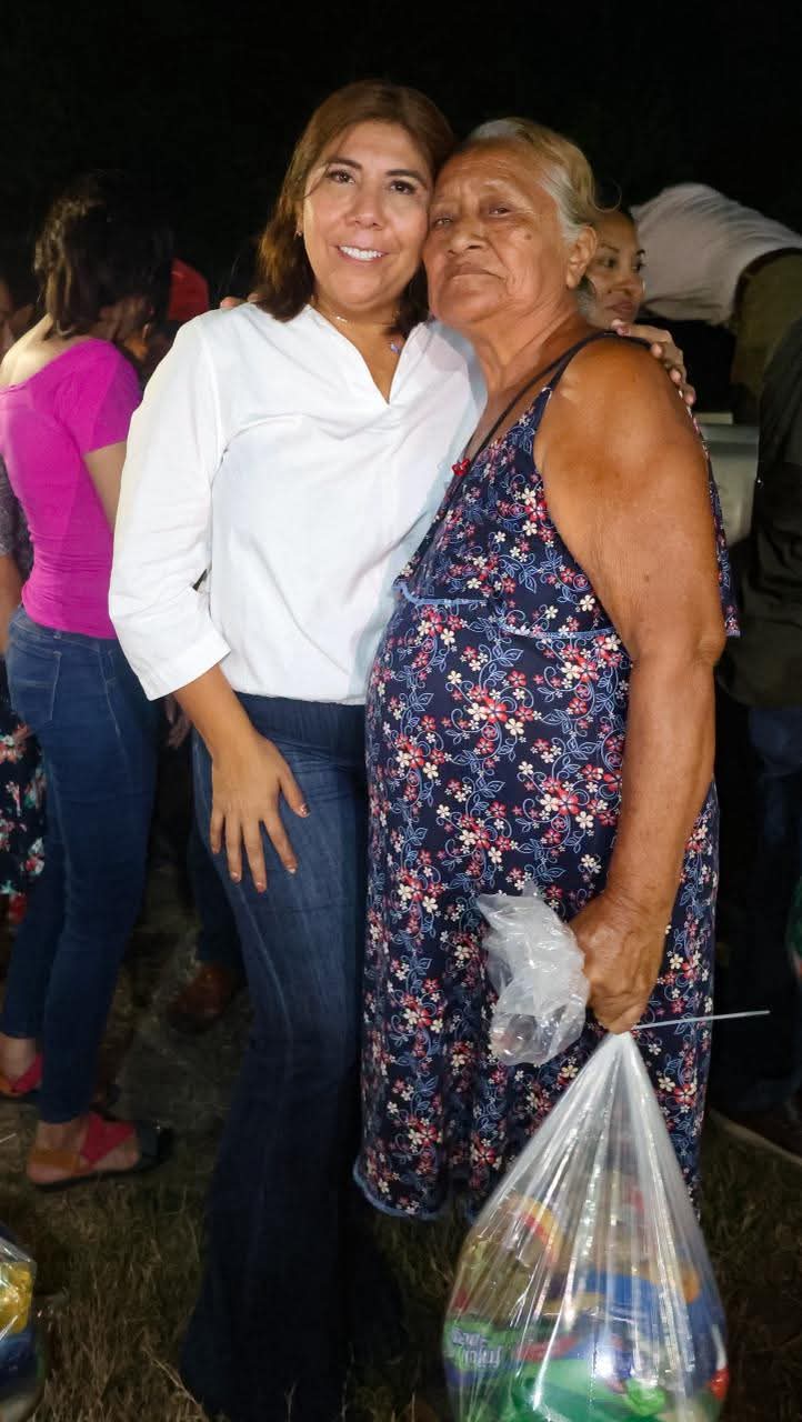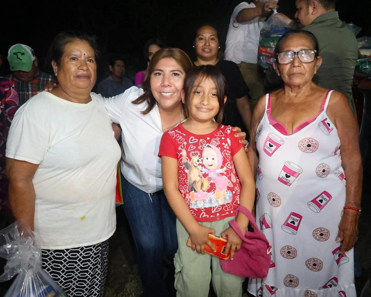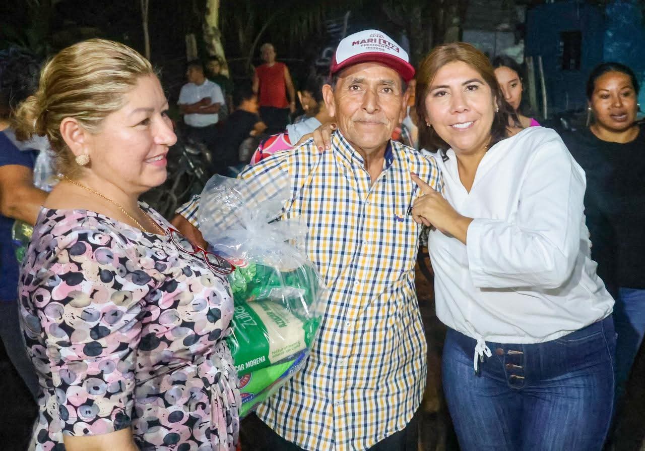 Mari Luz Velázquez Jiménez encabeza la entrega de apoyos alimentarios en Brisas del Mezcalapa, Huimanguillo.