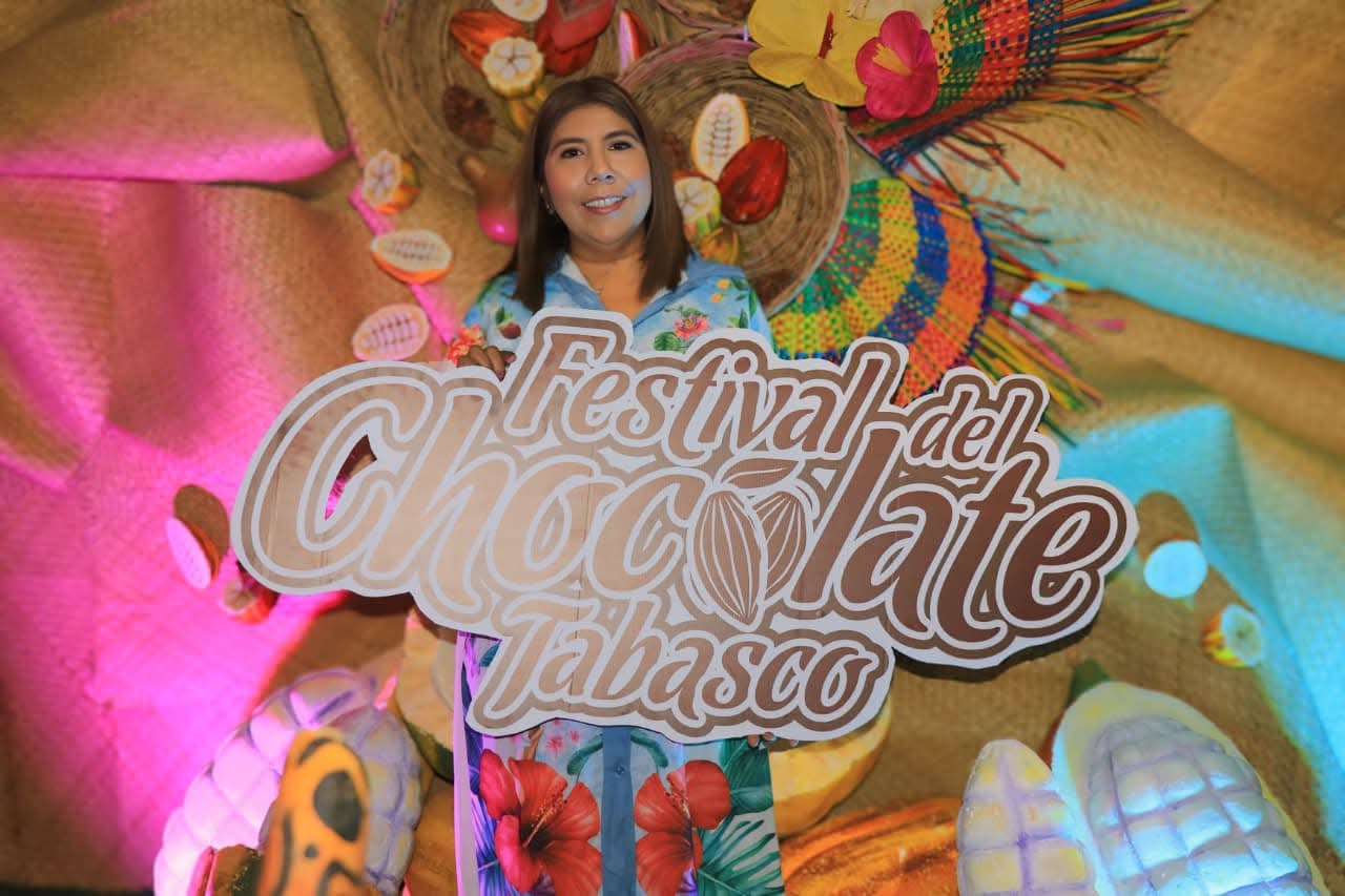 La presidenta municipal, Mari Luz Velázquez Jiménez, inauguró la tarde de este jueves, junto al gobernador del estado, Javier May Rodríguez, el stand de Huimanguillo en la edición 14 del Festival del Chocolate 2025.
