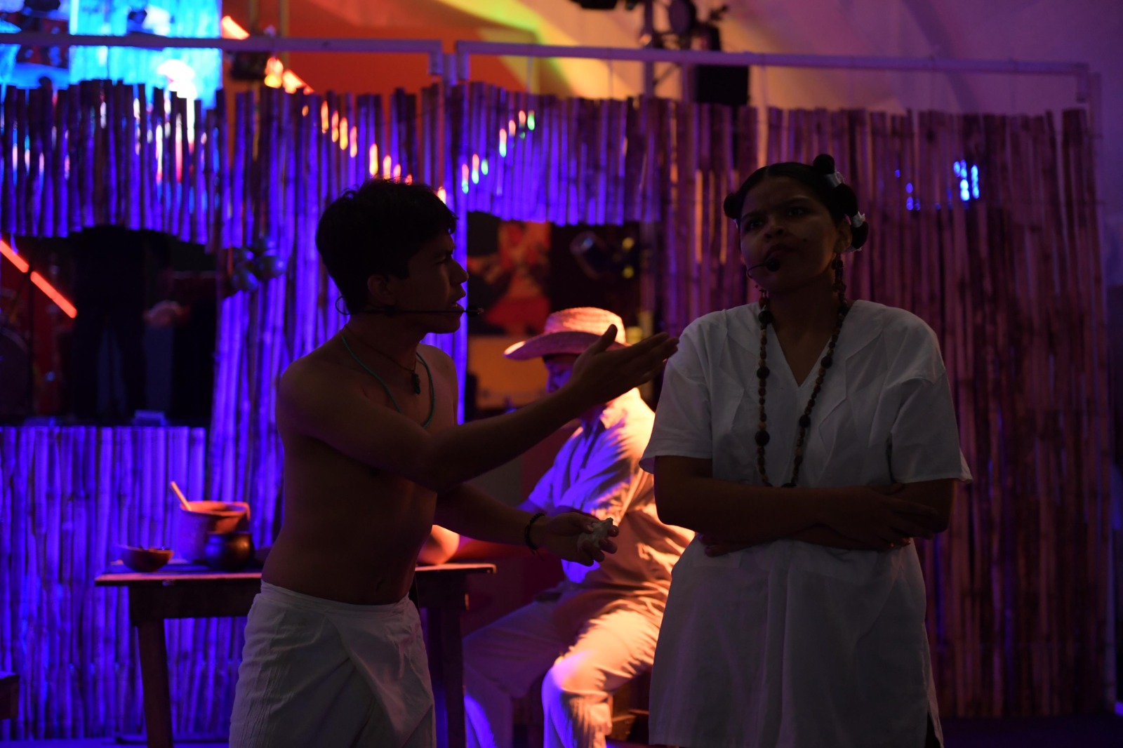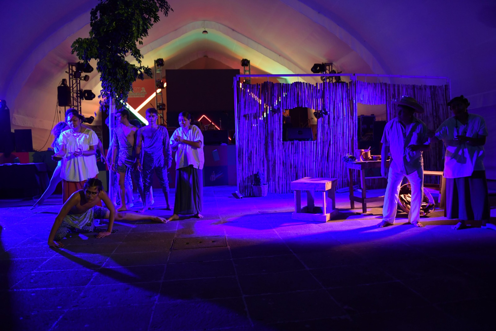 En punto de las 17:00 horas, el Foro Artístico se transformó en un escenario cargado de simbolismo con la participación del grupo teatral CEIBA, que dio vida a Ix Bolon, deidad femenina vinculada a la tierra, el agua y los ciclos naturales. La obra narró con fuerza y sensibilidad el mito de esta protectora de los saberes ancestrales, generando en el público un viaje a través de la cosmovisión de los pueblos originarios.