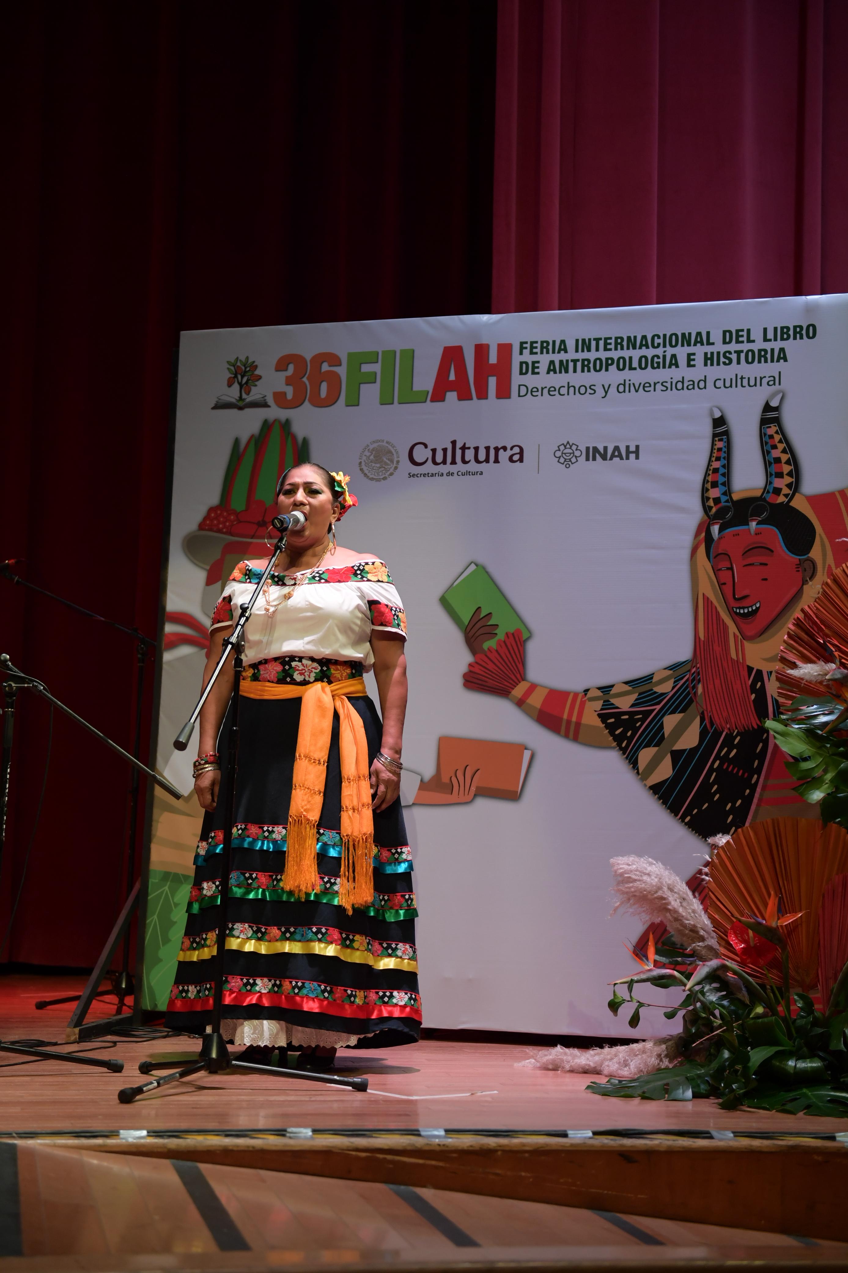 La apertura de la FILAH tuvo un momento solemne cuando la cantante Mary Esteban “La diosa Yokot’an” interpretó el Himno Nacional Mexicano en el Auditorio Jaime Torres Bodet. Más tarde, su voz se escuchó nuevamente en la sala principal del Museo Nacional de Antropología, en una presentación que reflejó la fuerza y el espíritu de la cultura chontal.