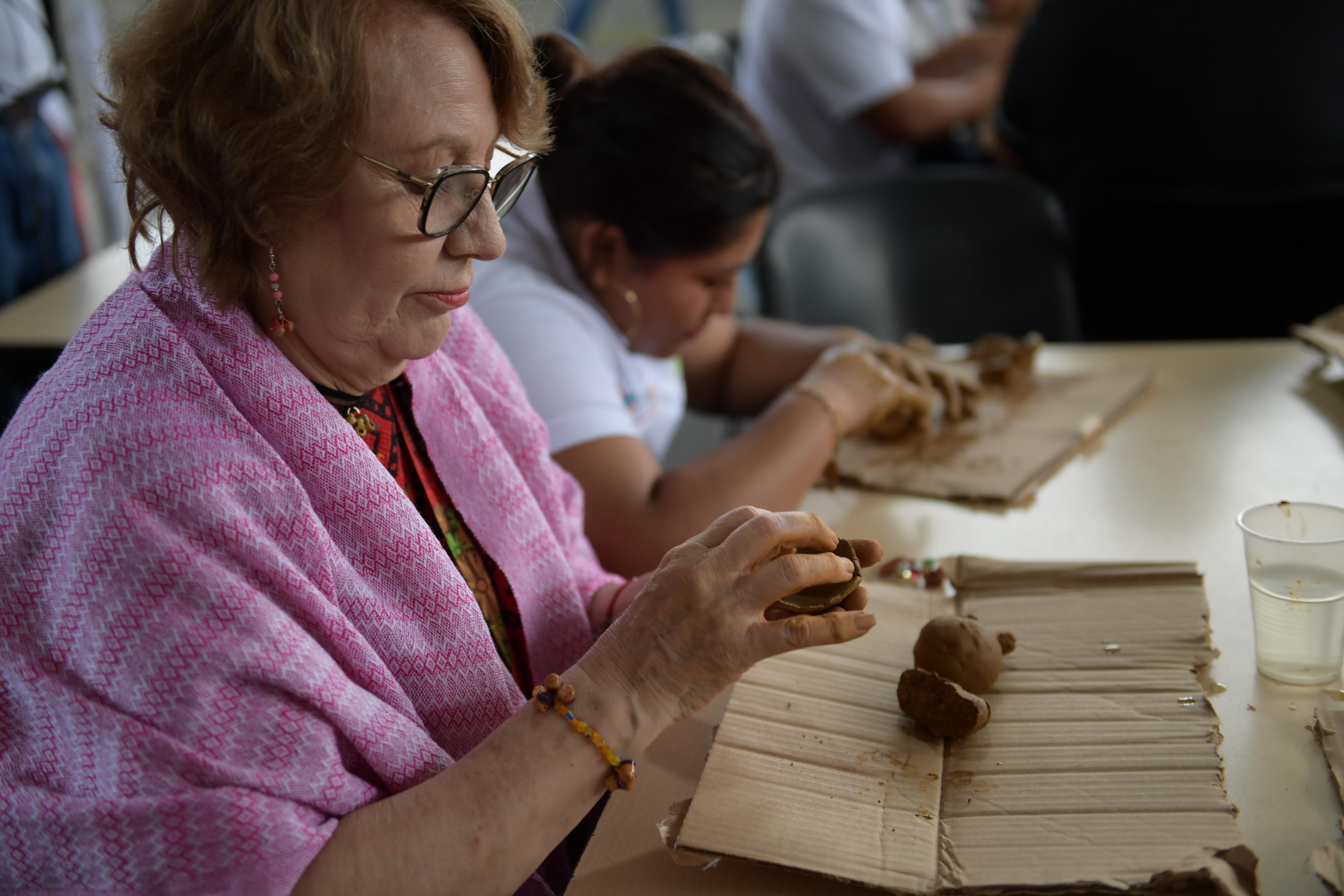 La secretaria Aída Elba Castillo Santiago también acompañó a los docentes y estudiantes en el taller de alfarería, donde visitantes nacionales e internacionales moldearon piezas que se convirtieron en recuerdos entrañables de la cultura tabasqueña.