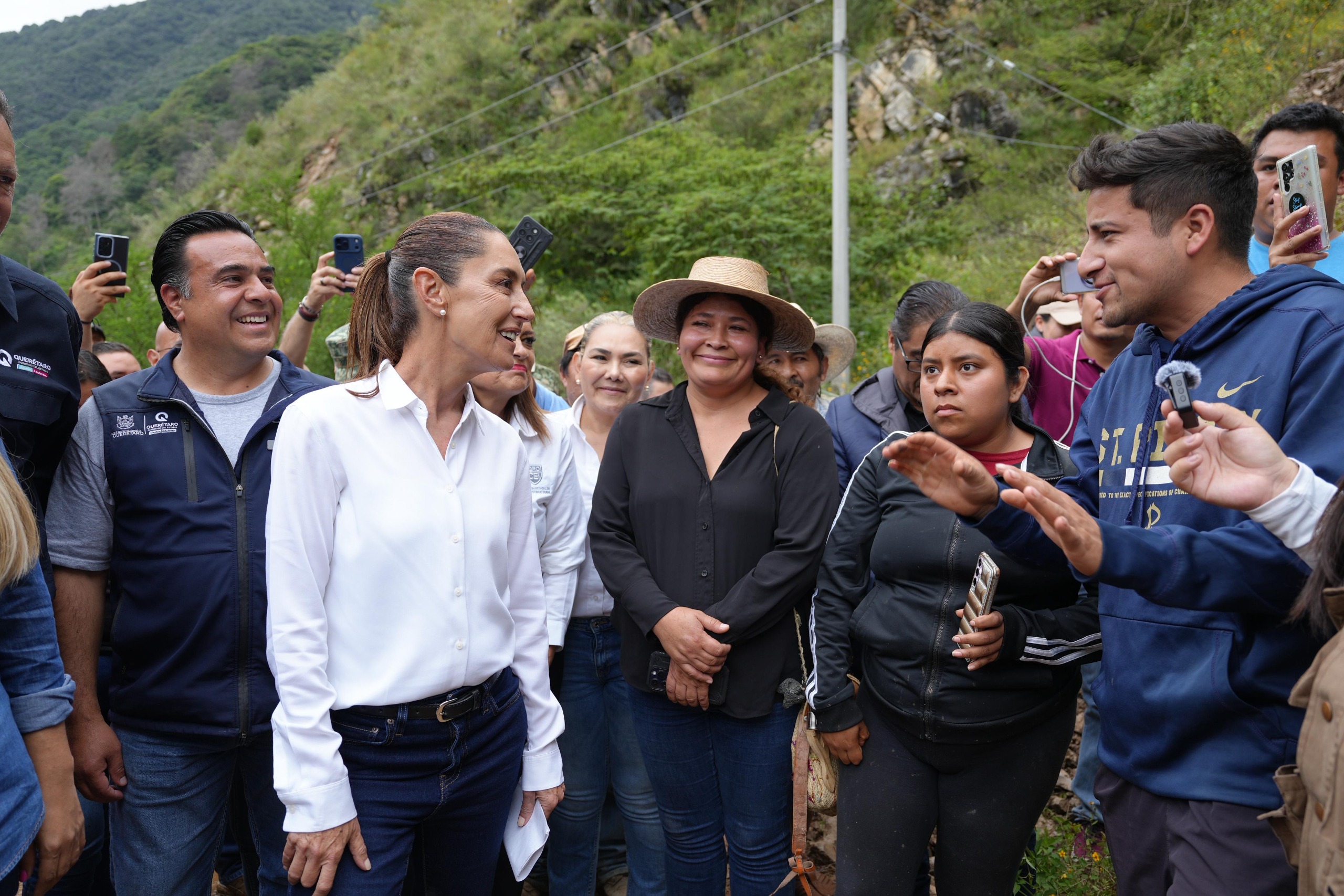 En su recorrido por las zonas afectadas del estado de Querétaro, la Jefa del Ejecutivo Federal es acompañada por el gobernador, Mauricio Kuri González, así como por miembros de su gabinete.