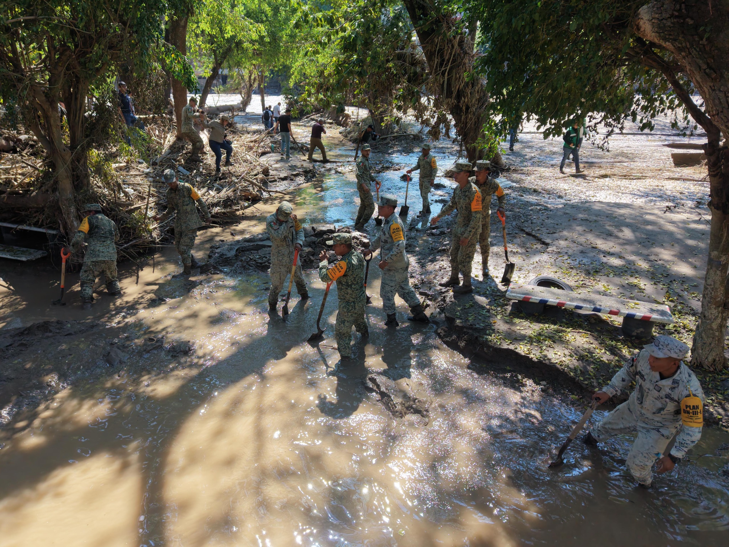 Los más altos mandos también están desplegados en territorio por instrucción de la Presidenta de México, un caso es el del secretario de la Defensa, general Ricardo Trevilla, quien en uno de los puentes aéreos instalados para llevar ayuda humanitaria atendió personalmente a pobladores de una zona serrana en Hidalgo, o el almirante Raymundo Pedro Morales, secretario de la Marina, quien encabeza las tareas en Veracruz.