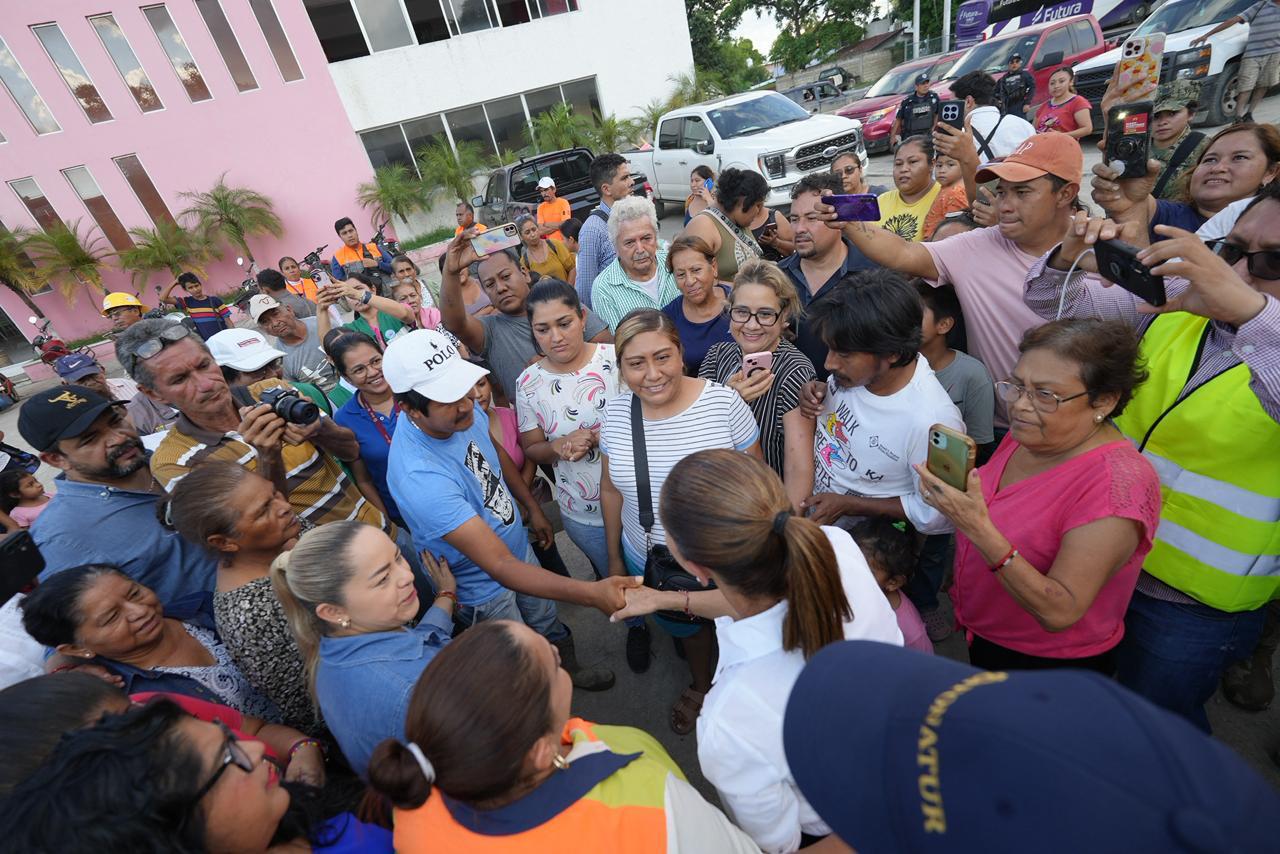 Durante su recorrido, en el que estuvo acompañada por servidores públicos, supervisó los trabajos de limpieza e informó que ya se realizan los censos por parte de la Secretaría de Bienestar para la entrega de apoyos.