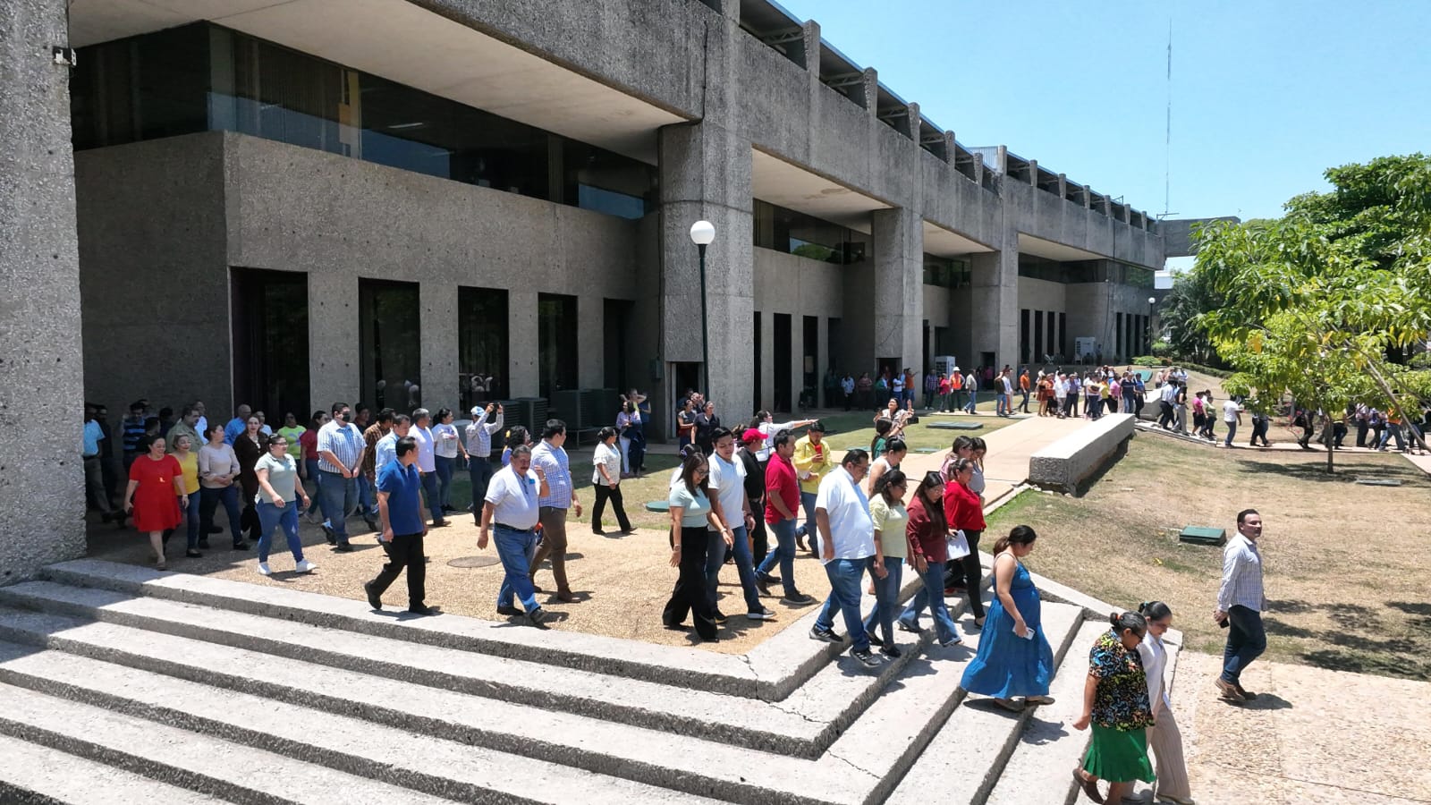 A las 11:30 horas, de este martes 29 de abril, se activaron las alarmas en todo el estado y tan solo en Palacio de Gobierno, un total de 149 personas fueron desalojadas en solo cinco minutos, quienes fueron concentrados en Plaza de Armas, en el Centro de Villahermosa.
