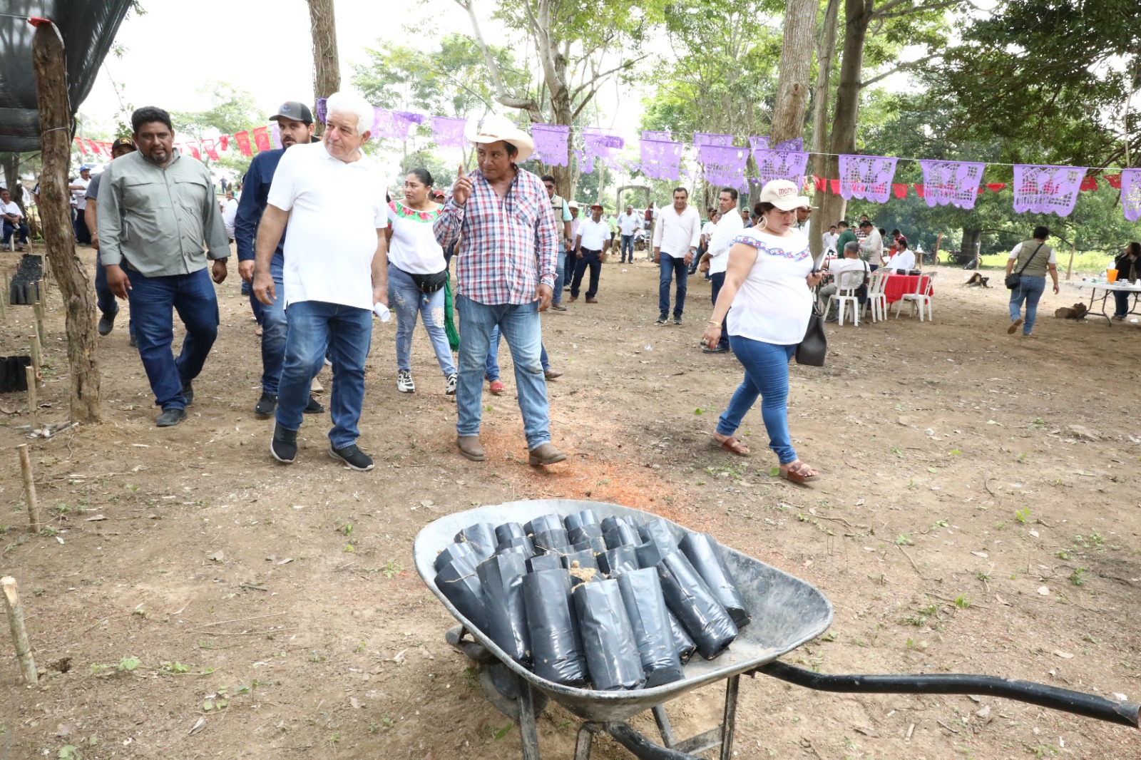 “Nos encontramos aquí, en el Vivero Macuilí, en Tepetitán, municipio de Macuspana. Es un vivero nuevo, relativamente los compañeros empezaron hace tres semanas a trabajar y, como podrán ver, va avanzando. Con el cierre de septiembre, llevamos 509 CAC’s con 20 mil sembradores y sembradoras”, detalló Gerónimo Castillo.