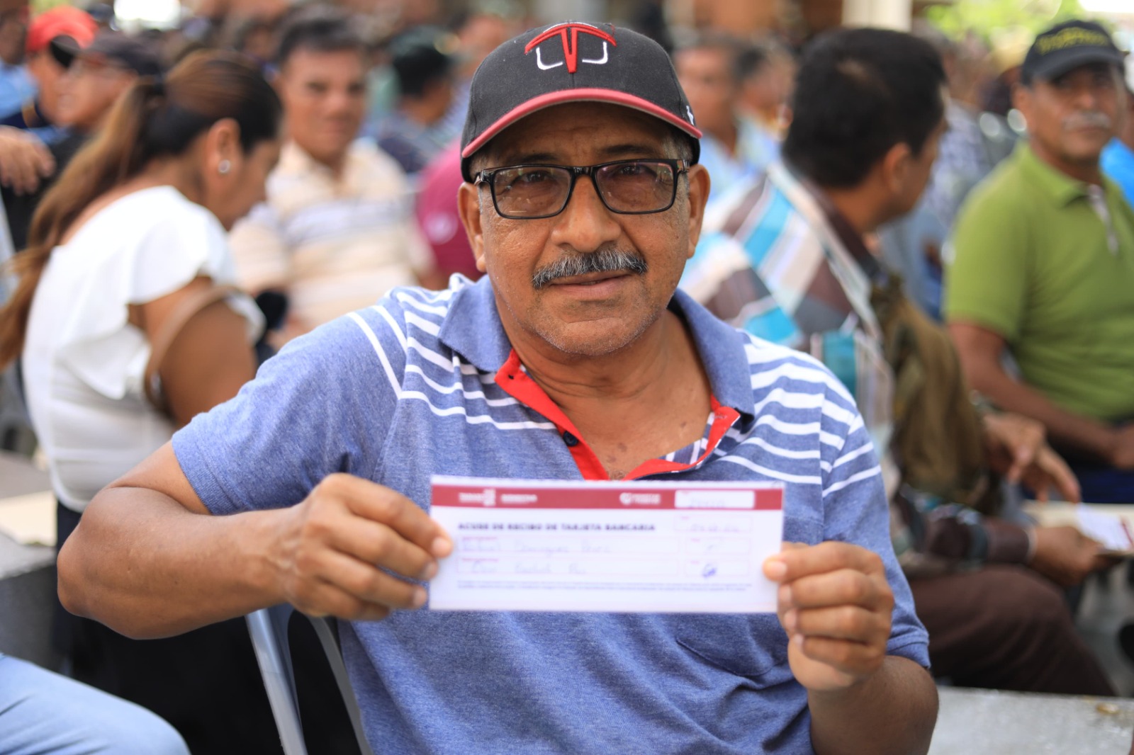 Jimena Cárdenas Márquez, subsecretaria de Bienestar e Inclusión, destacó que las tarjetas entregadas a los hombres no solo representan un plástico, sino un reconocimiento del Gobierno de Tabasco al trabajo y sacrificio que han realizado toda su vida, “este programa es un derecho por el trabajo que ustedes han hecho toda la vida”, mencionó.