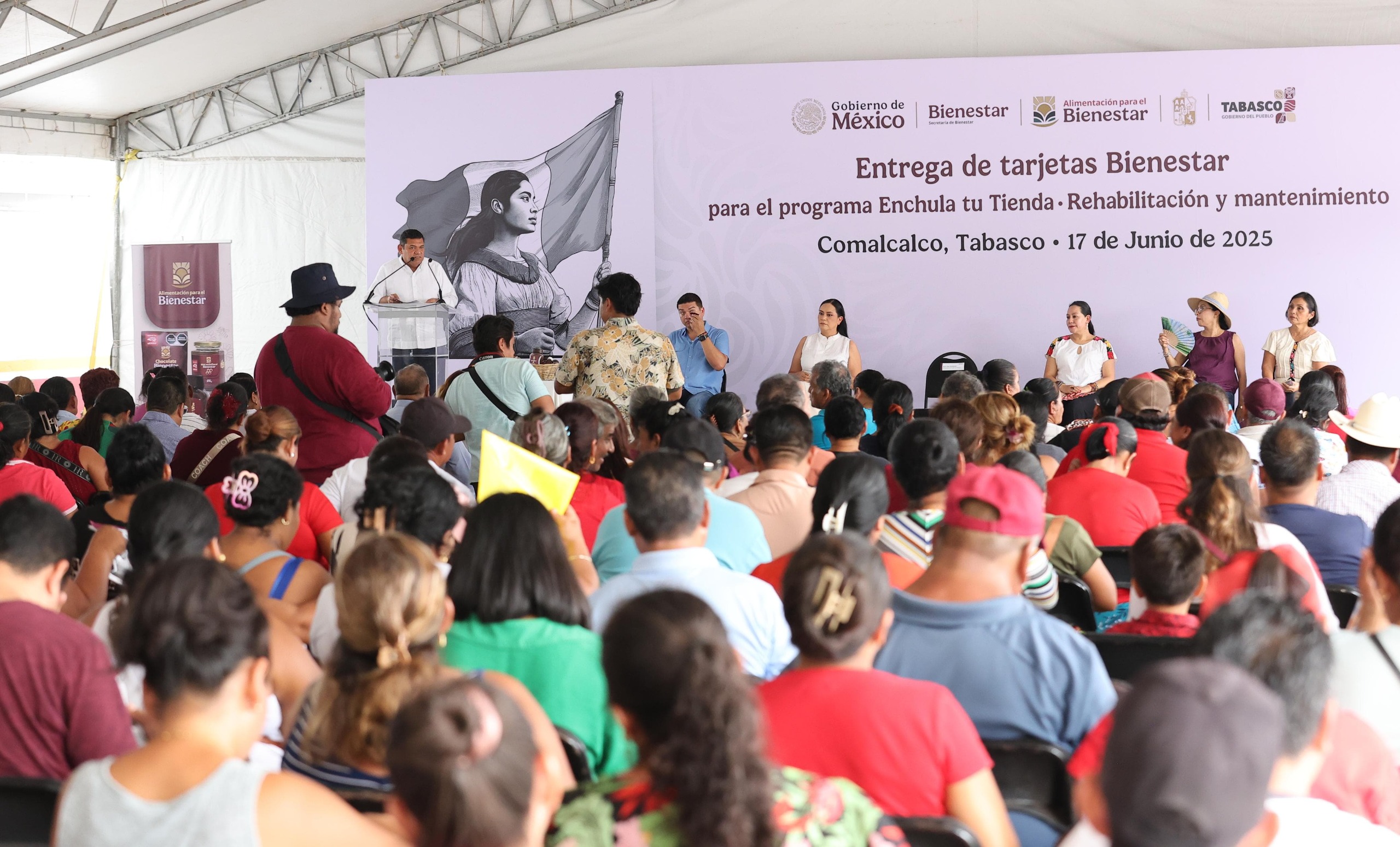 Con el otorgamiento de apoyos para mejorar las Tiendas Bienestar se continúa atendiendo las causas que generan desigualdad social, afirmó el Gobernador Javier May Rodríguez al hacer entrega junto con la secretaria del Bienestar federal, Ariadna Montiel Reyes y la directora de Alimentación para el Bienestar, María Luisa Albores González, de las primeras 66 tarjetas del programa ‘Enchula tu Tienda’.