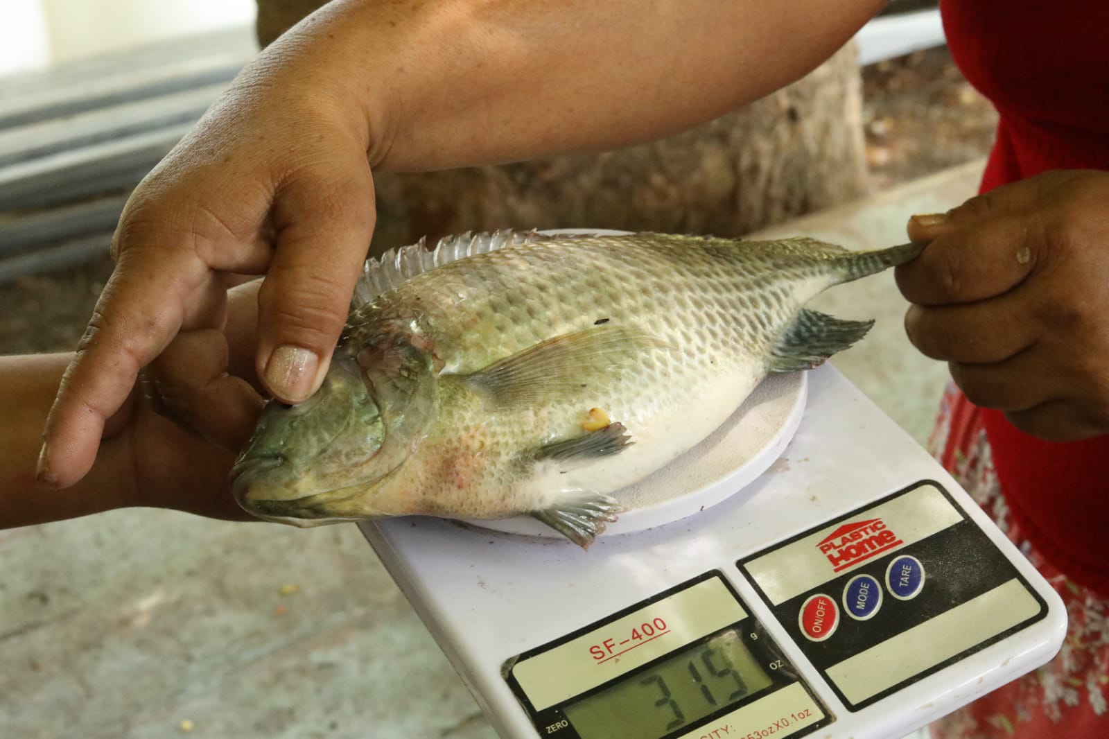 Junto a su esposo e hijos, doña Evangelina ha dedicado el tiempo necesario a la crianza de las mojarras, periodo en el que ha contado en todo momento con el acompañamiento y asesoramiento técnico necesario para que las crías tengan el desarrollo adecuado y puedan ser comercializados o consumidos por su propia familia. “¡Las mojarras ya pesan entre 320 a 415 gramos!”, expresó con orgullo.
