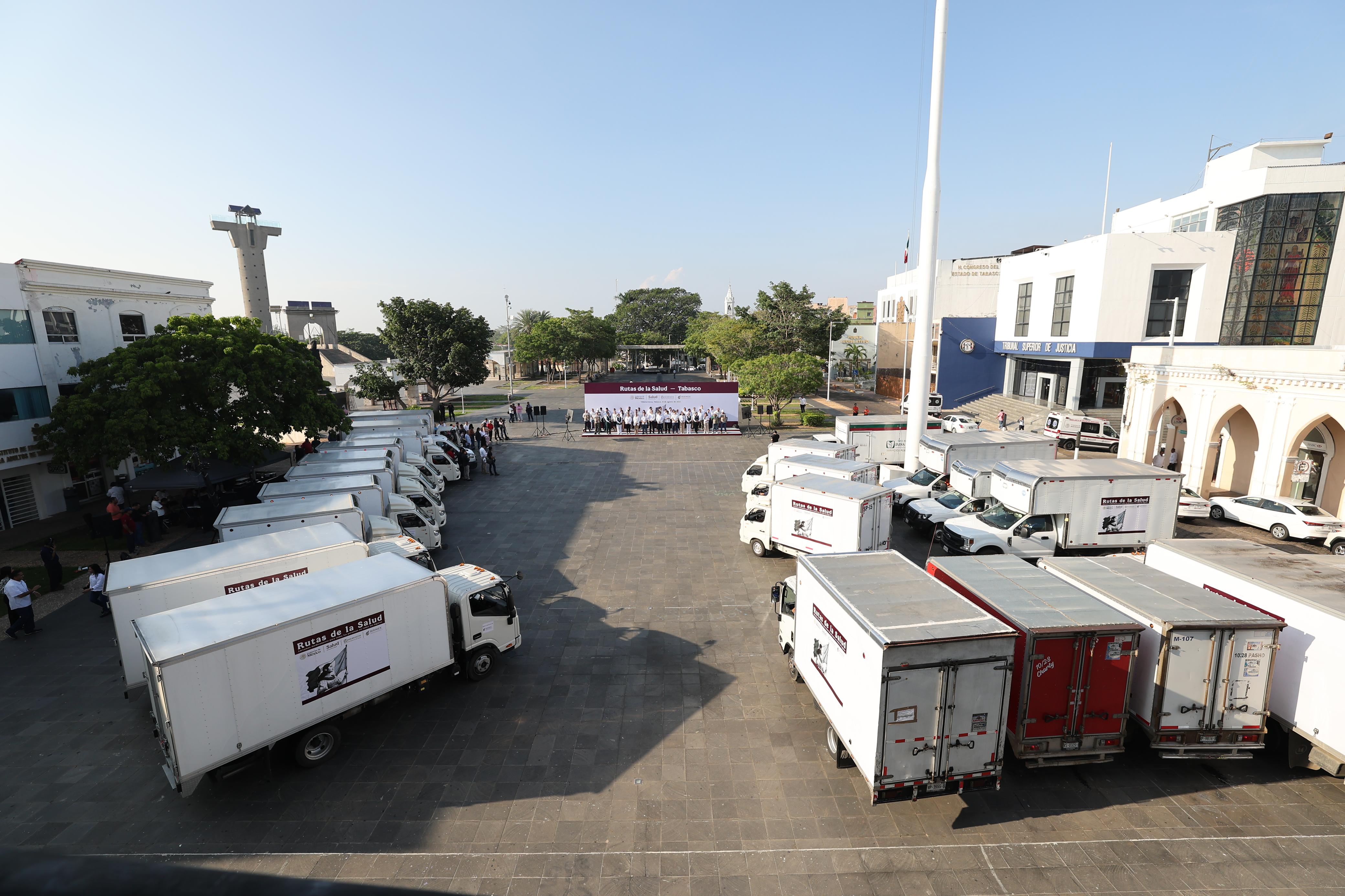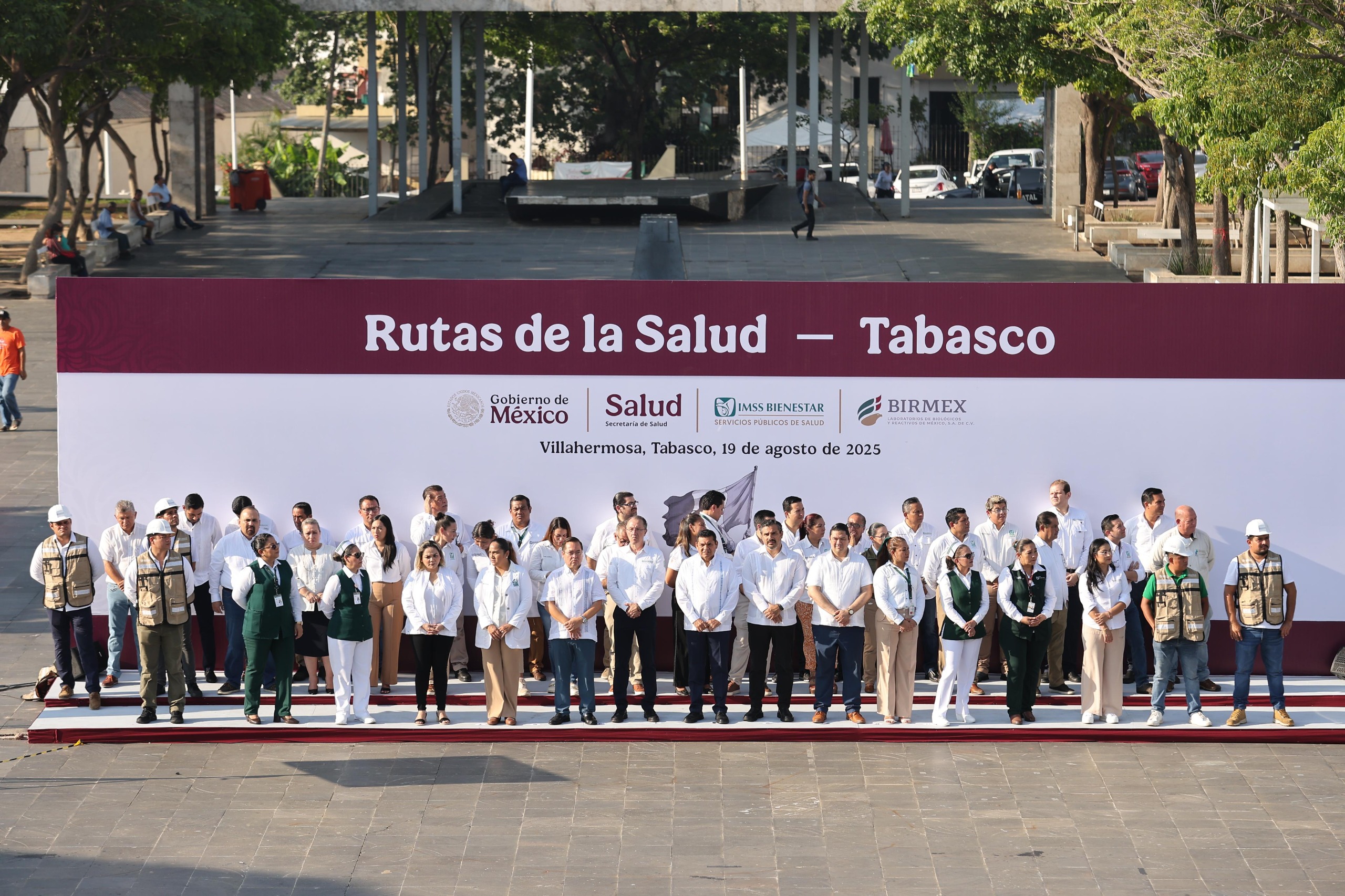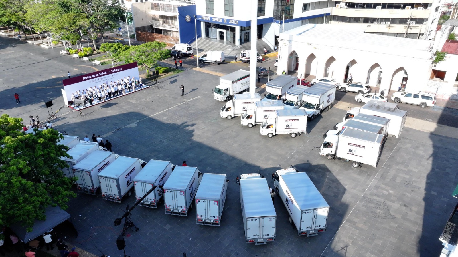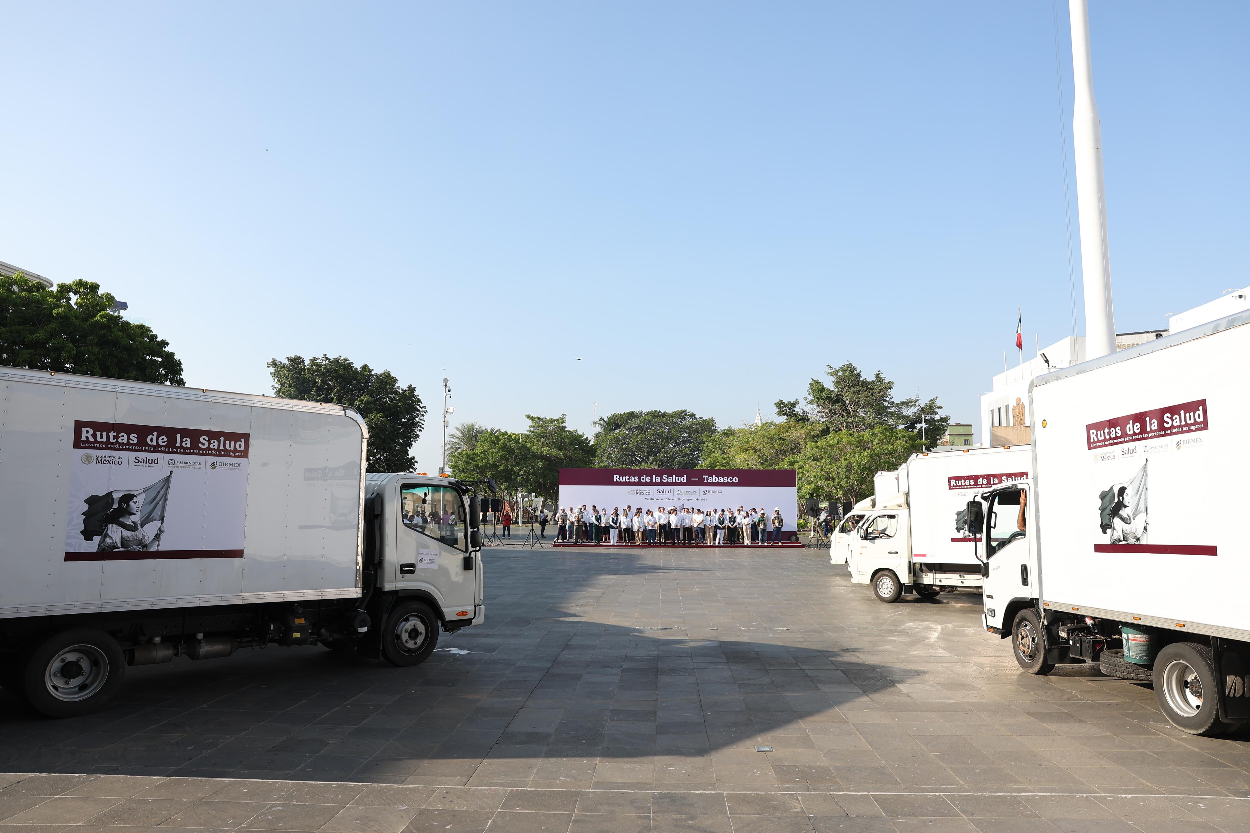 El Gobernador Javier May Rodríguez, en presencia vía online de la Presidenta Claudia Sheinbaum Pardo, dio el banderazo de salida a 28 vehículos que forman parte de las ‘Rutas de la Salud’, una estrategia federal implementada por el IMSS-Bienestar que permitirá distribuir más de un millón 90 mil medicamentos a 503 unidades médicas en los 17 municipios y consolidar el sistema de salud en el estado.