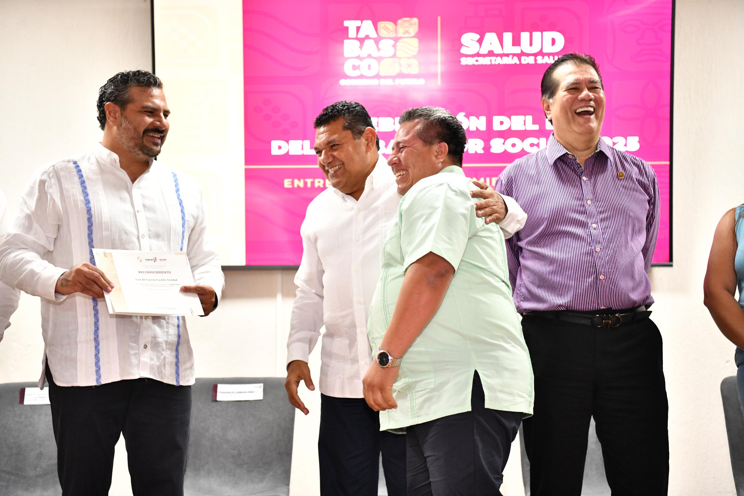 El secretario de Salud, Alejandro Calderón, refirió que Tabasco cuenta con 860 trabajadoras y trabajadores sociales en las instituciones públicas de salud, y su presencia “no sólo fortalece el servicio, sino también lo hace posible en términos de dignidad y humanidad”.
