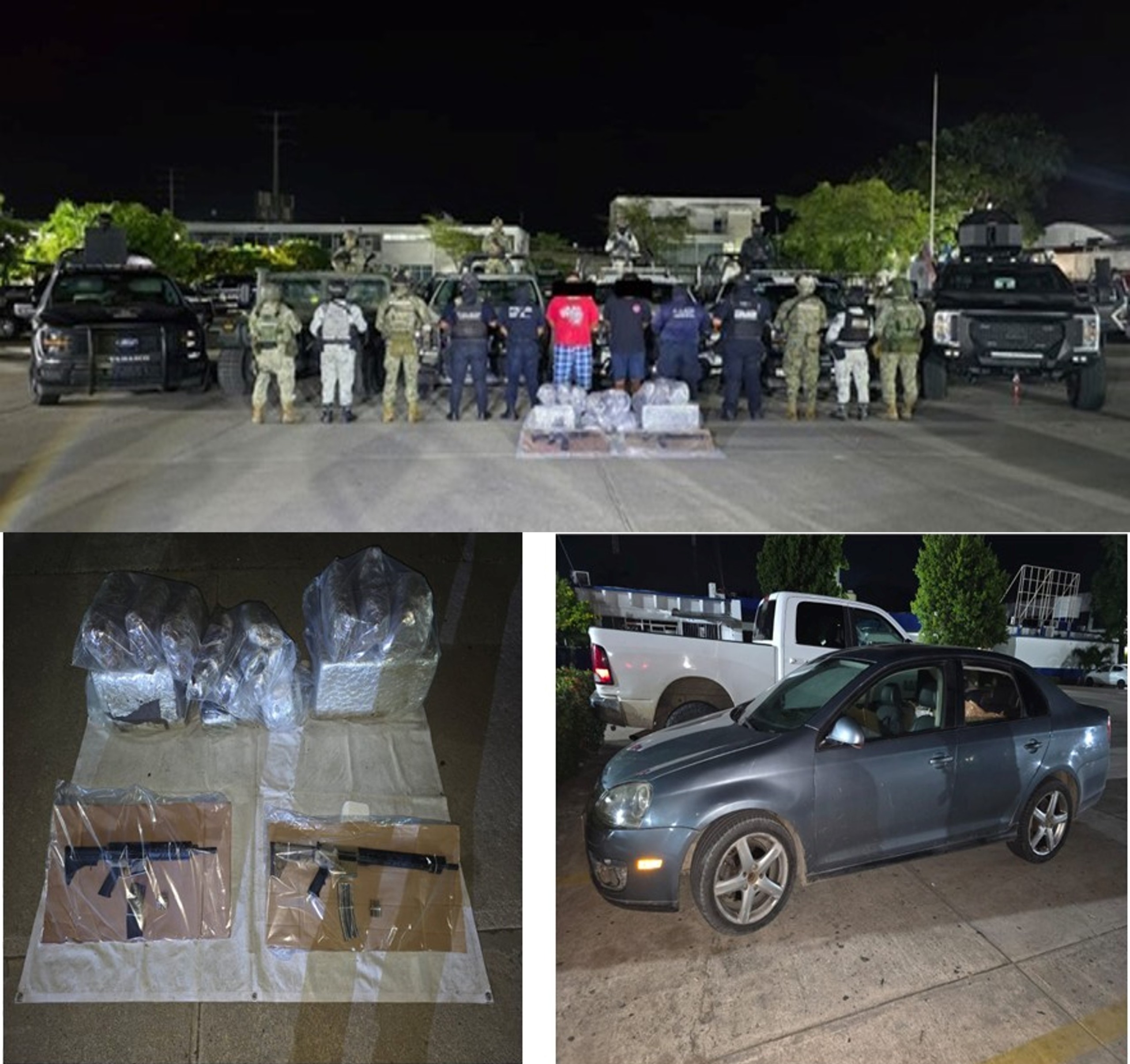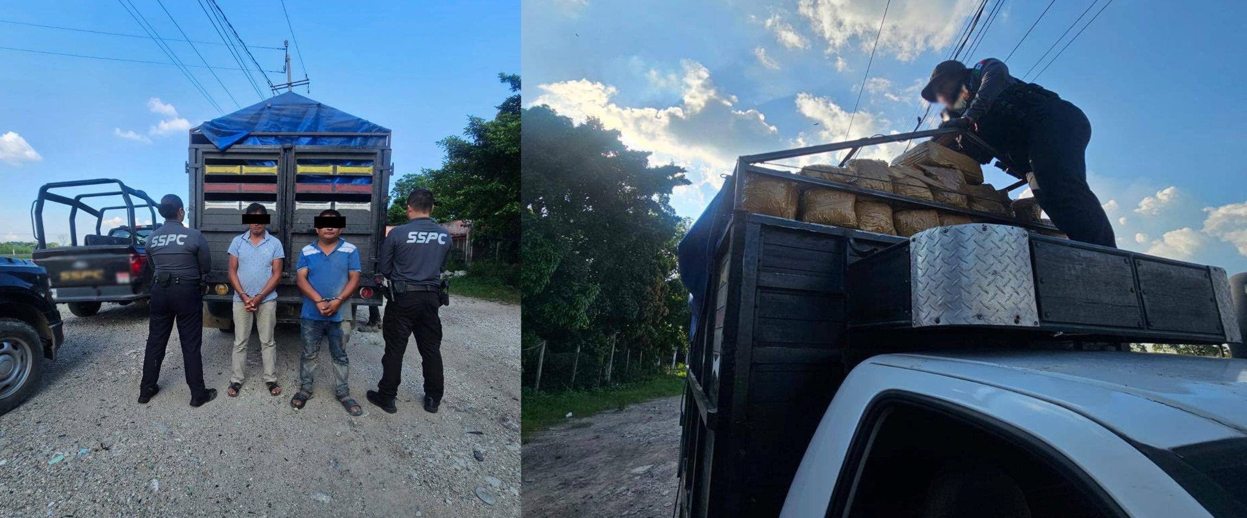 En otro hecho, las fuerzas de seguridad localizaron sobre la carretera Cárdenas-Coatzacoalcos una camioneta cargada con un aproximado de 300 kilogramos de marihuana, quedando detenidos por esos hechos dos sujetos. En el municipio de Huimanguillo también fueron detenidos dos masculinos más por delitos contra la salud y portación de arma de fuego.