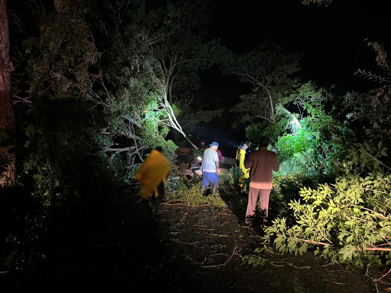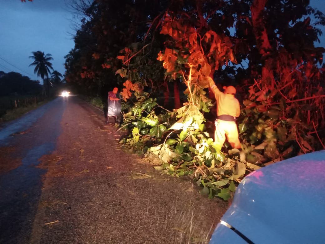 Entre las acciones destaca el retiro de un árbol de teca en Teapa que obstruía un carril de la carretera hacia la ranchería Galeana, restableciéndose la circulación vehicular de manera segura.