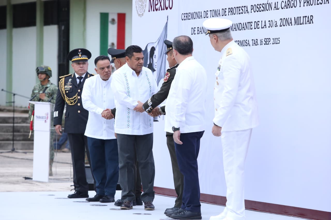 El Gobernador Javier May Rodríguez atestiguó la toma de Posesión de Cargo y Protesta de Bandera del General de Brigada de Estado Mayor, Jesús Alejandro Adame Cabrera, como comandante de la 30ª Zona Militar en Tabasco, cargo encomendado por la Presidenta México y Comandanta Suprema de las Fuerzas Armadas, Claudia Sheinbaum Pardo.