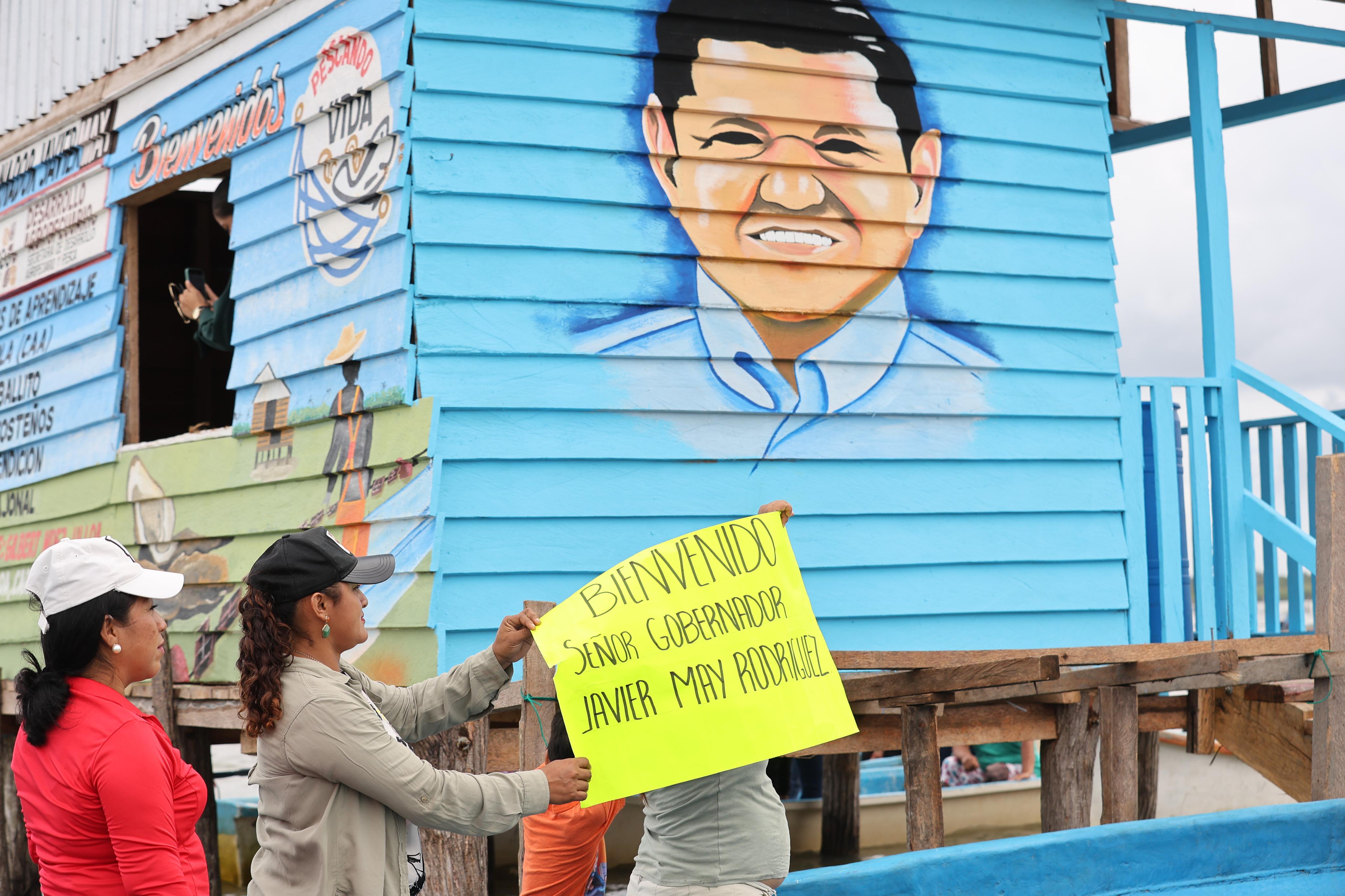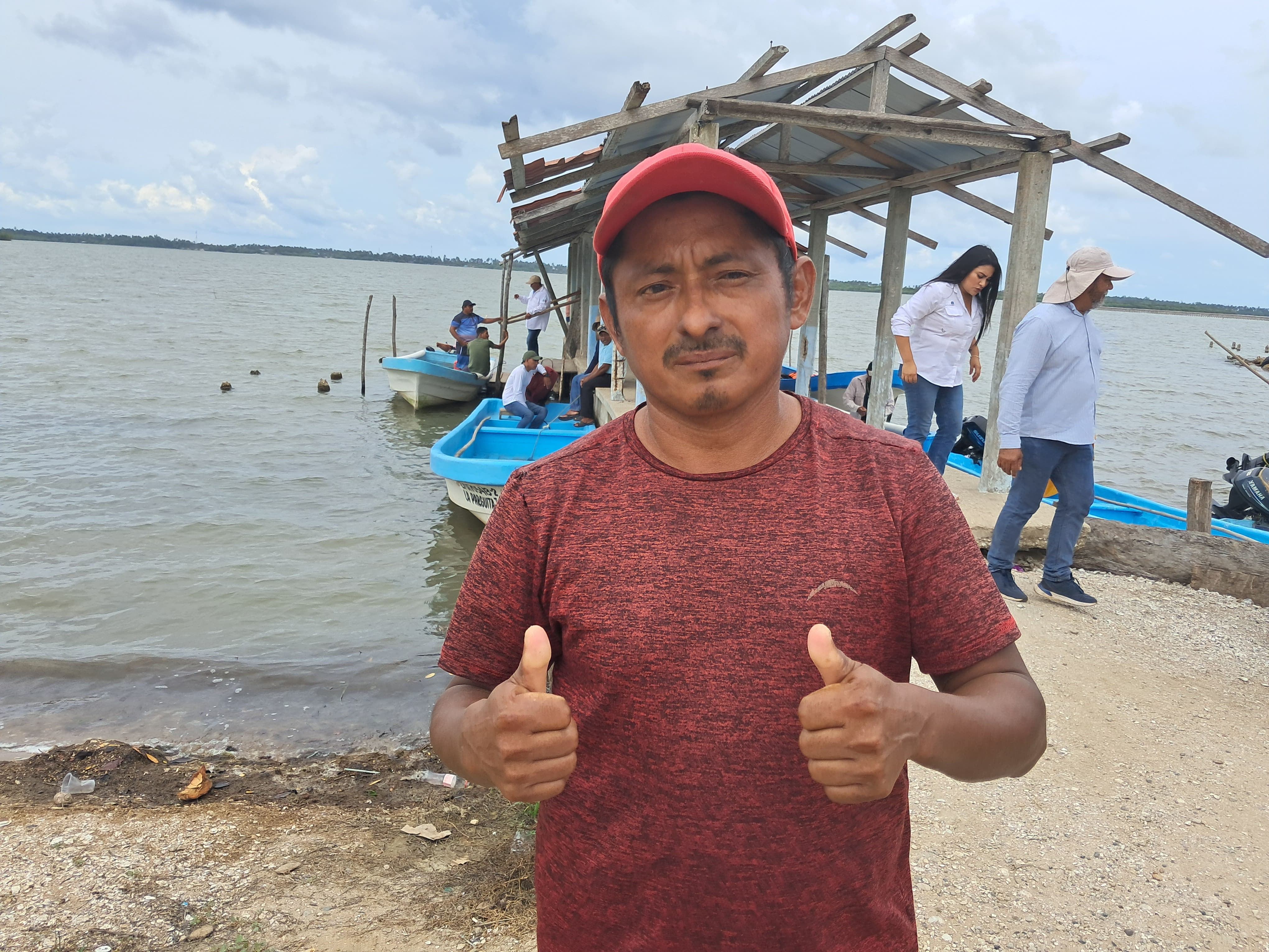 En vez de eso, recorrió 105 kilómetros de palmeras despeinadas, potreros inundados y peculiares casas al borde de una accidentada carretera, para arribar a un pequeño embarcadero, acompañado del presidente municipal de Cárdenas, Euclides Alejandro Alejandro. Ya lo esperaban la secretaria de Desarrollo Agropecuario y Pesca, Luisa del Carmen Cámara Cabrales; y un grupo de pescadores, que lo saludó y le dio las gracias por la visita, a lo que ellos llaman su “isla fantasma” porque, según opinan, antes no existían para las autoridades.