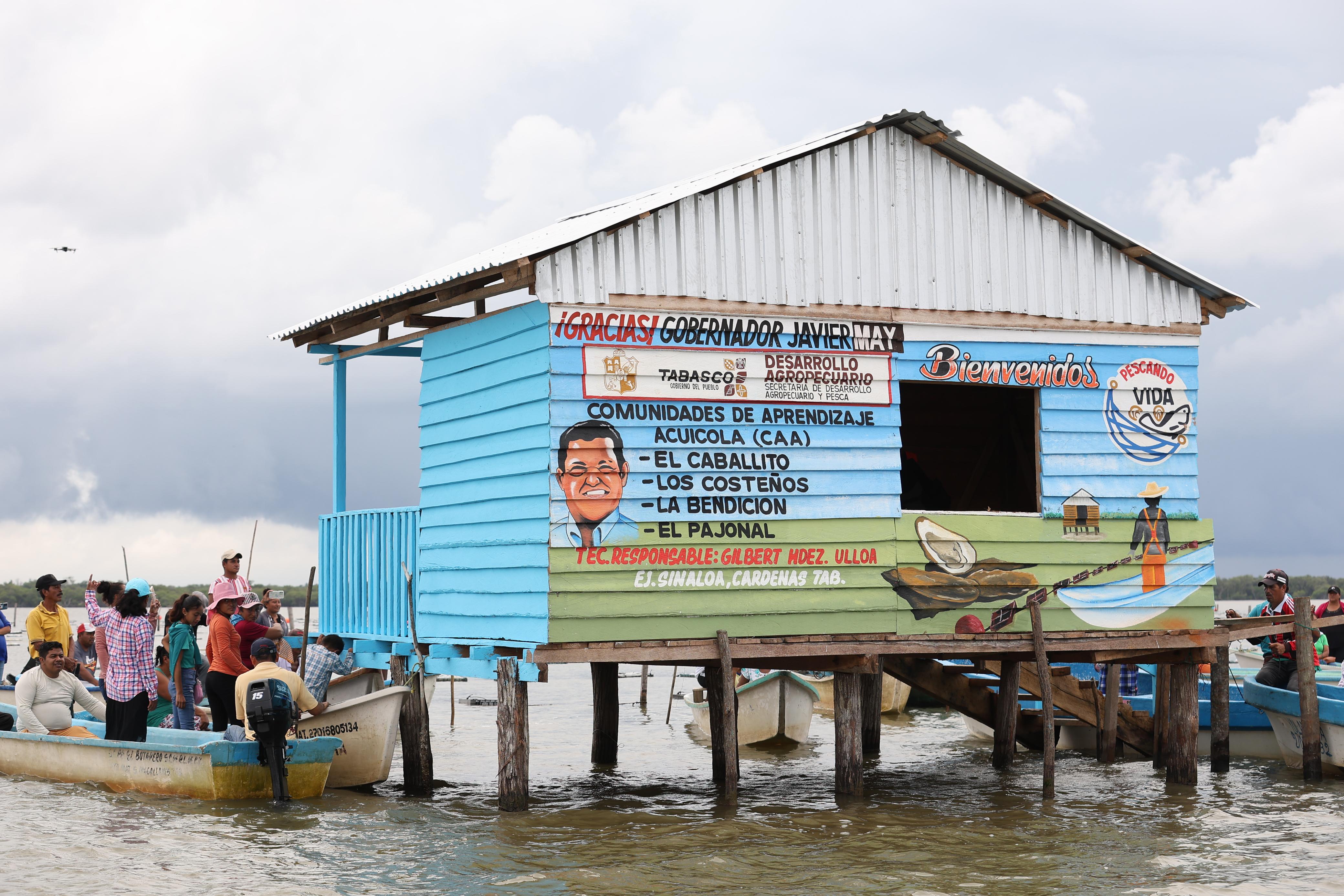 El Gobernador de Tabasco, Javier May Rodríguez no viajó a Tailandia sino a la llanura costera para entregar, en medio de las aguas ‘bailadoras’ de la laguna El Pajonal, materiales para el cultivo de ostión, a pescadoras y pescadores de cinco poblados que viven en una franja arenosa, entre la villa de Sánchez Magallanes y Paraíso.