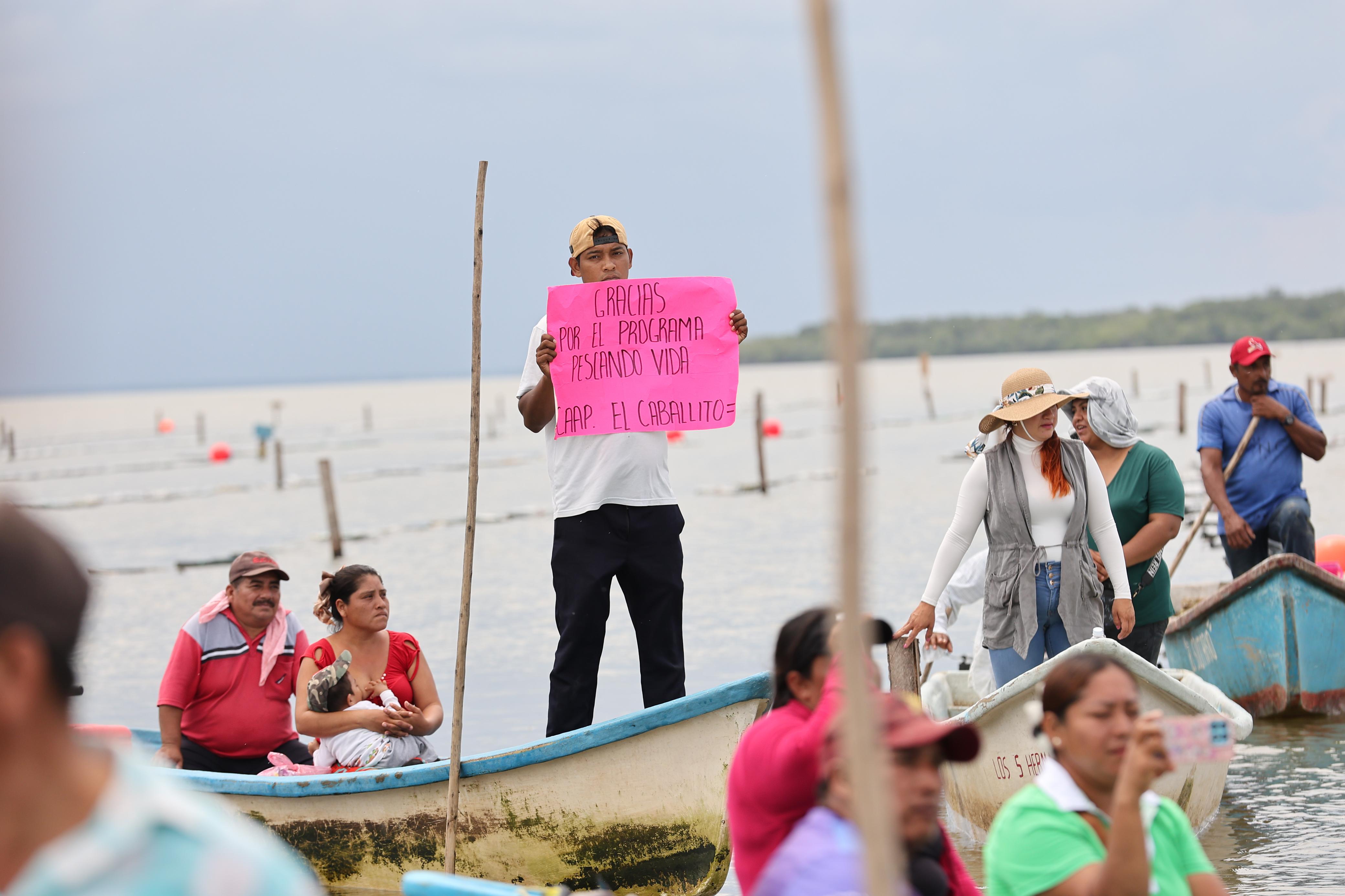 En el puente de siembra Capricornio, flotaban más de 20 lanchas y cayucos con 100 hombres y mujeres de agua dulce que cultivan el ostión a través del programa estatal Pescando Vida, con el que reciben un jornal mensual que les permite sortear la veda y cumplir los tiempos de veda.