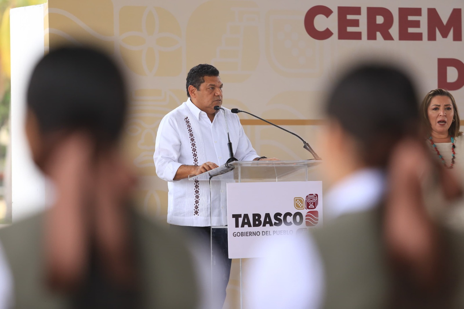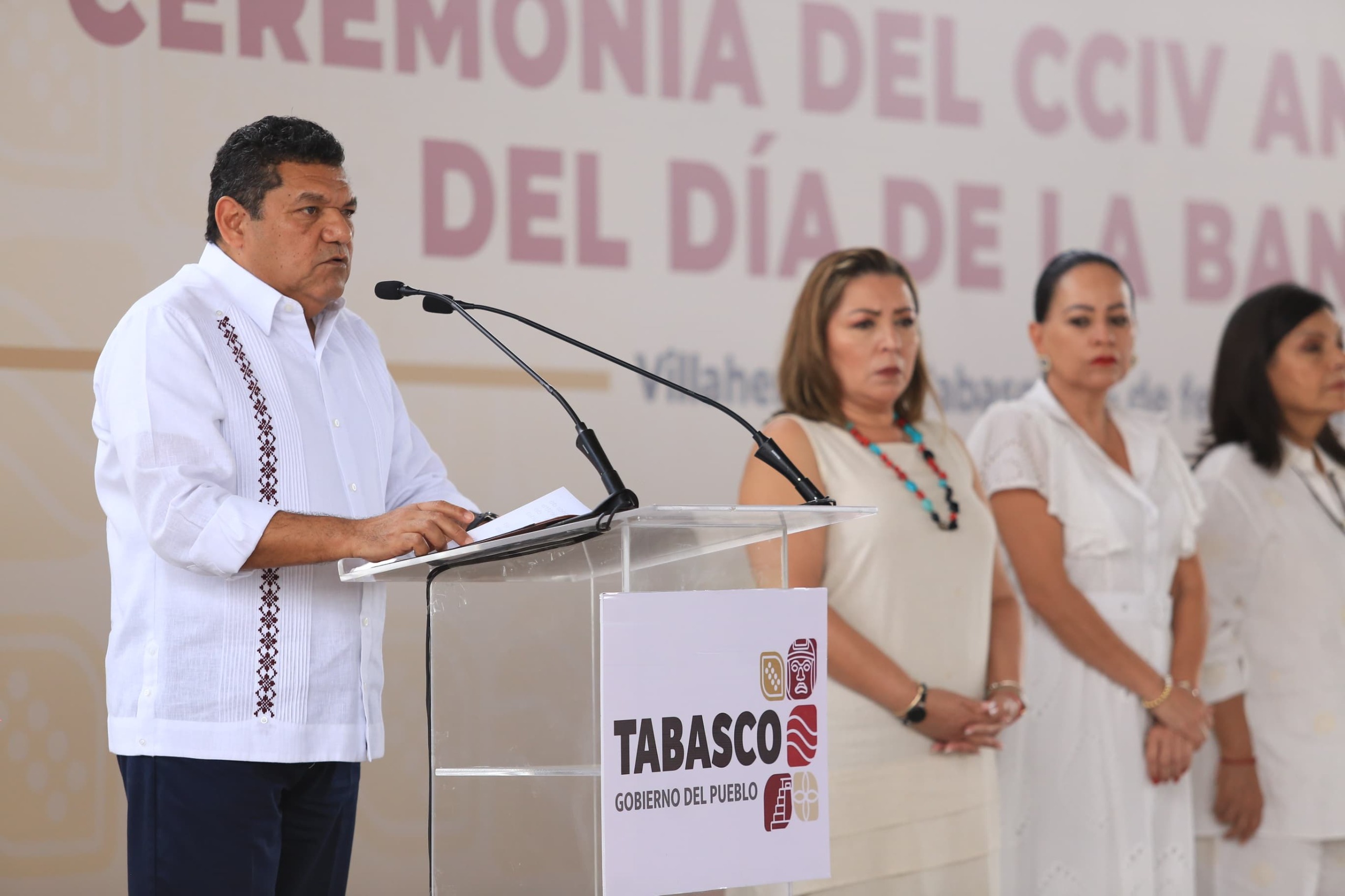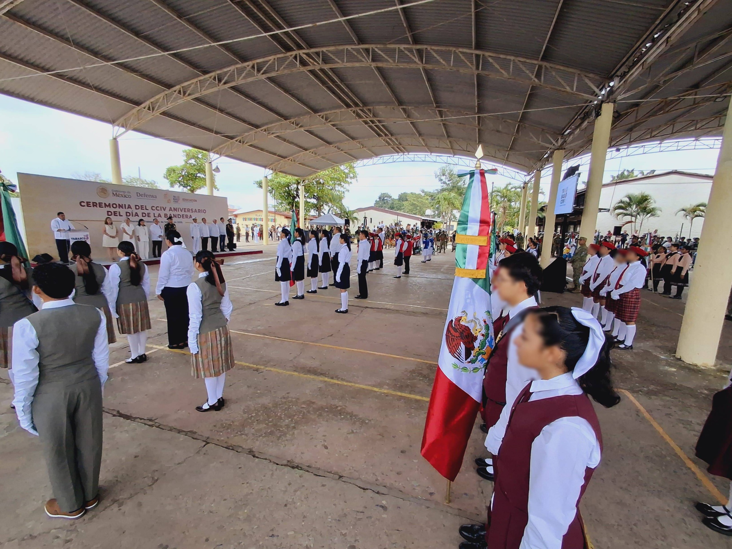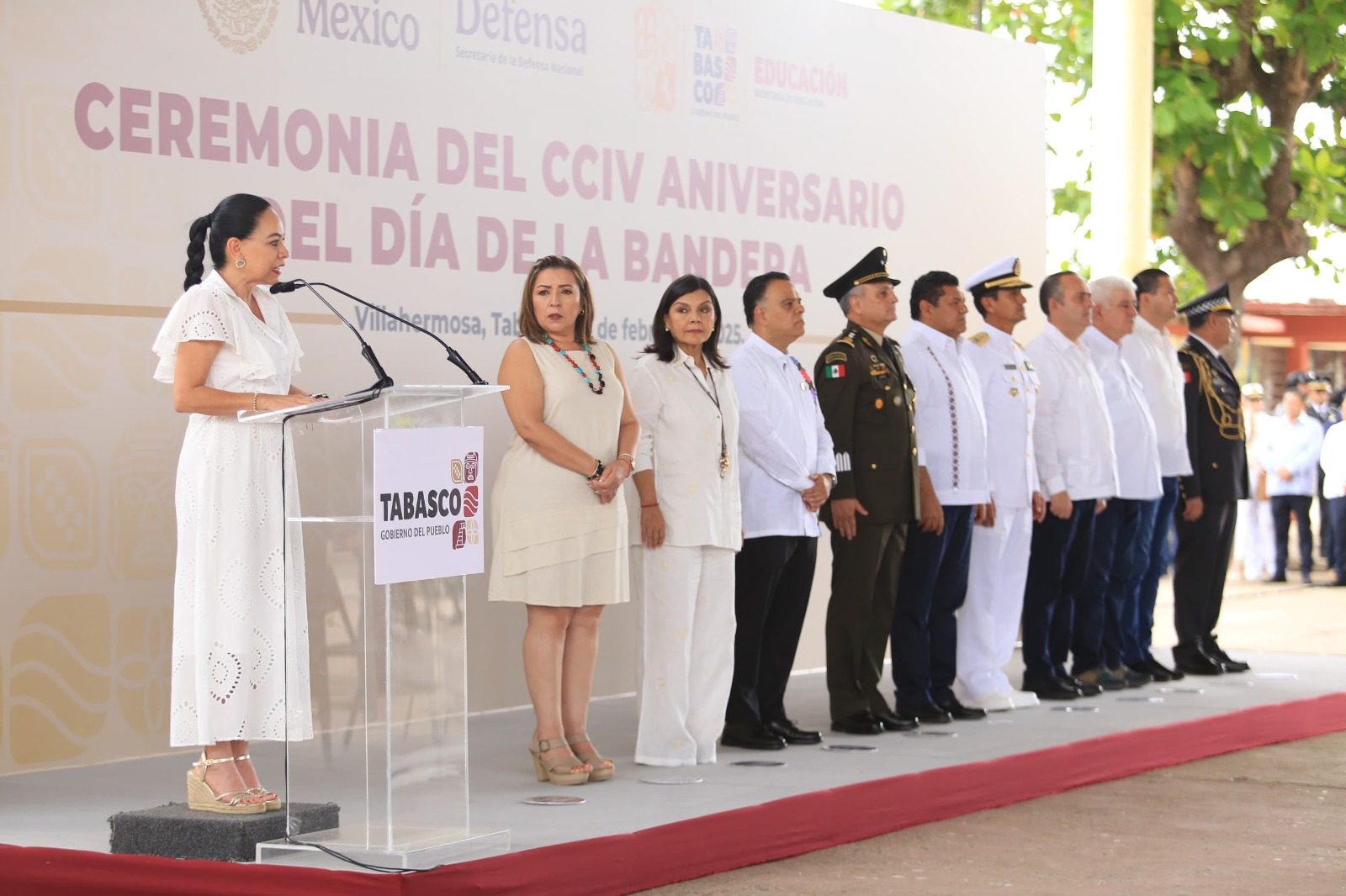 En el Centro Integrador No. 1 de la colonia El Recreo en Villahermosa, y ante estudiantes de las 25 escuelas primarias y secundarias abanderadas, resaltó que la Bandera de México simboliza la independencia, el honor y la soberanía nacional, además que «nos une, da identidad y fortalece nuestros valores cívicos».