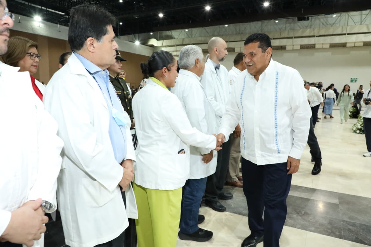 En el Centro de Convenciones y ante quienes denominó pilares fundamentales del sistema de salud en el estado, May Rodríguez sostuvo que el trabajo de médicas y médicos es decisivo para consolidar el servicio a la población. “Su vocación de servicio es ejemplo del compromiso que distingue a quienes ejercen la medicina con ética y respeto”, manifestó.