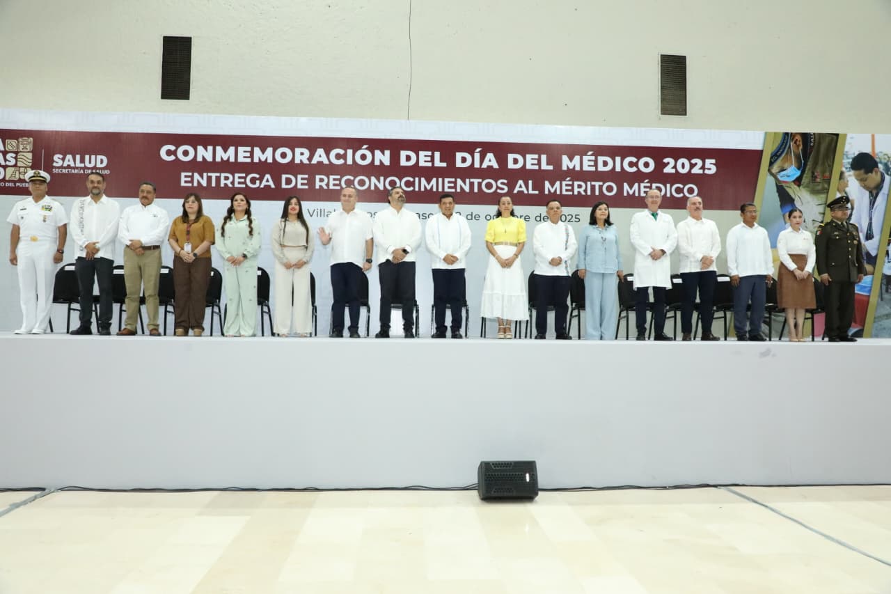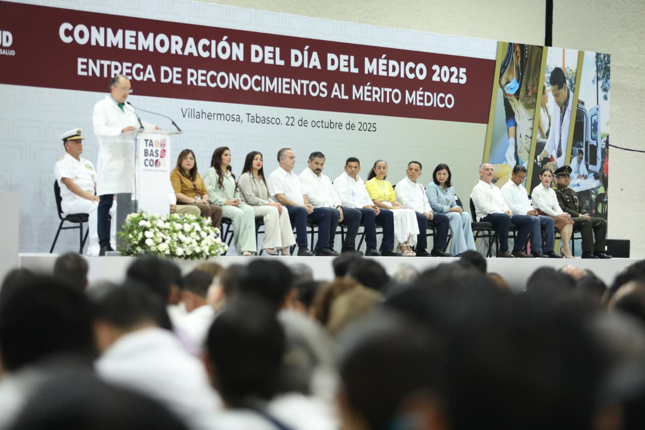 Al sostener que la salud no es un privilegio sino un derecho que las y los profesionales de la salud materializan con su vocación de servicio, el Gobernador Javier May Rodríguez encabezó la ceremonia de conmemoración del Día del Médico 2025, en la que hizo entrega de reconocimientos y la Medalla al Mérito Médico a dos destacados tabasqueños.