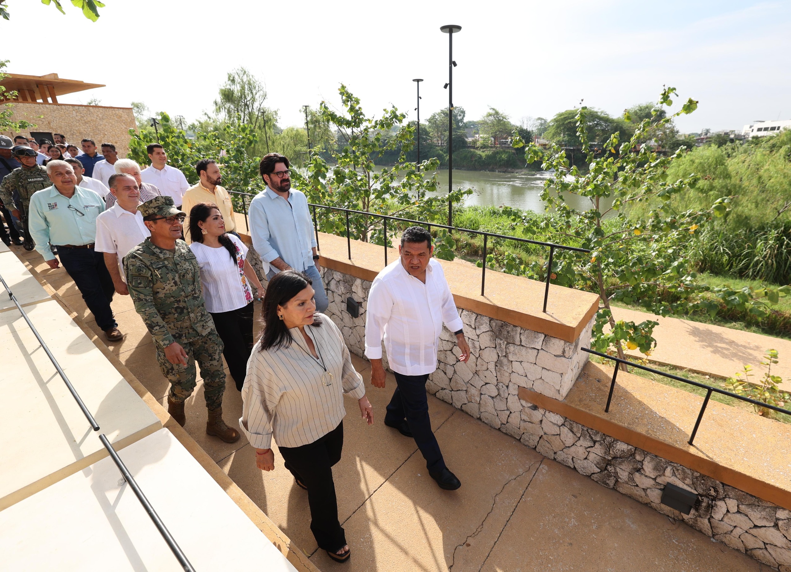“La Conagua iniciará la otra parte, en el otro tramo, para que logremos recuperar nuestros ríos, recuperar nuestros cauces que se perdieron por el asolvamiento, o sea, el río está sufriendo, pero lo vamos a volver a encausar para poder utilizarlo y que sea navegable”, afirmó.