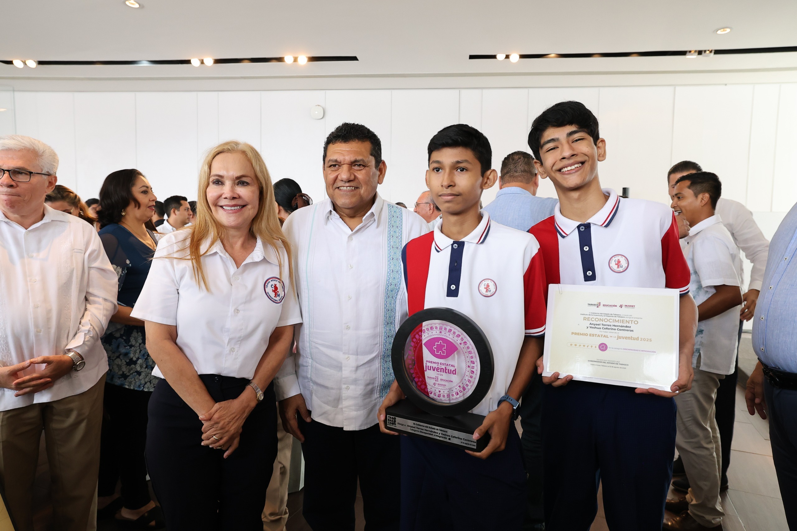 “En el marco del Día Internacional de la Juventud, celebramos la voluntad de cambio y la capacidad de nuestras juventudes para abrir nuevos caminos en beneficio de todas y todos”, afirmó el Gobernador Javier May Rodríguez al entregar el máximo reconocimiento que otorga el Gobierno del Pueblo a cinco tabasqueñas y cinco tabasqueños “que han demostrado que el compromiso personal puede convertirse en un bien colectivo”, lo cual dijo que reafirma desde las instituciones que las juventudes son y seguirán siendo protagonistas de la transformación de nuestro estado.