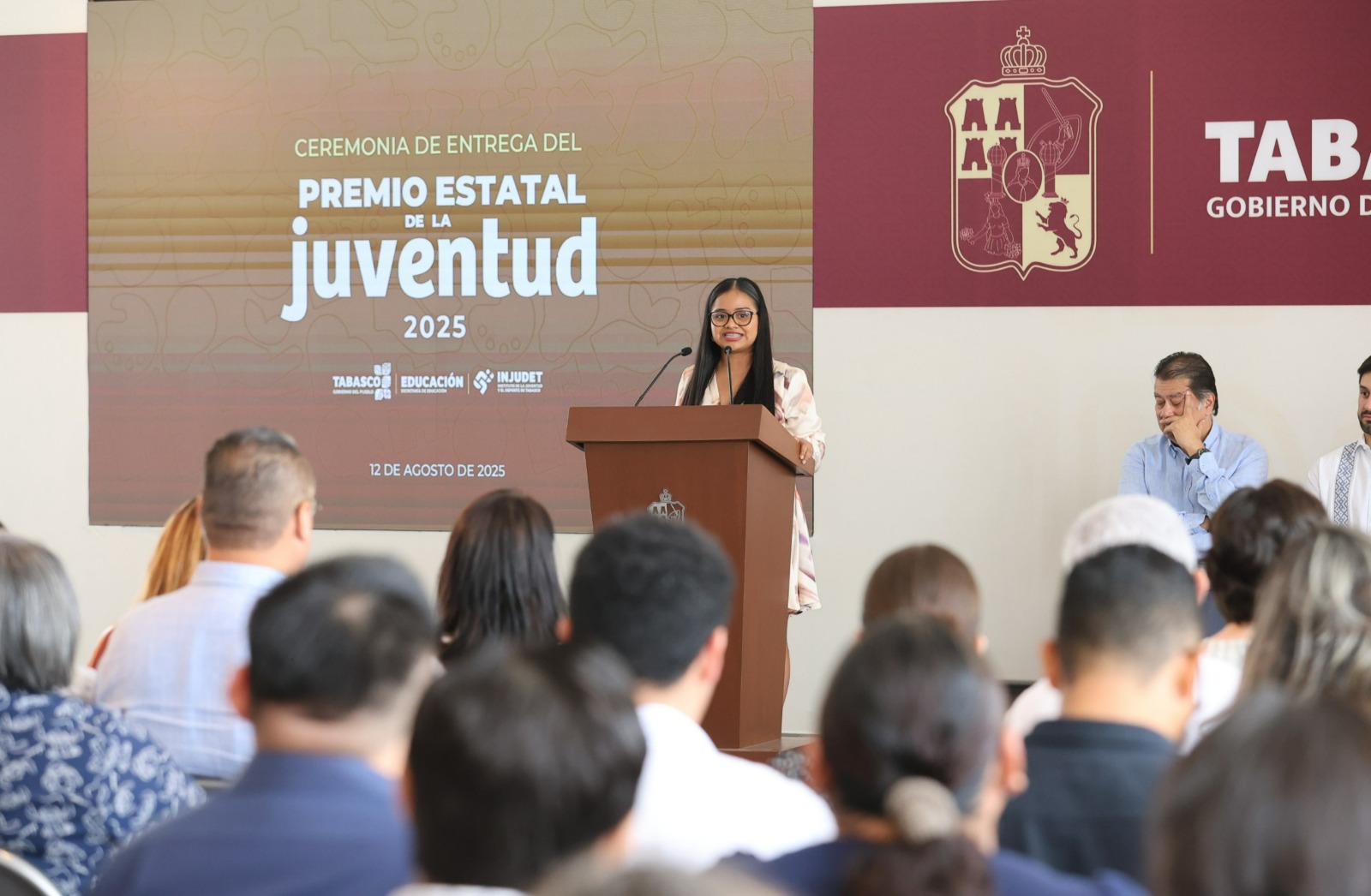 Reconoció que, en cada categoría premiada, hay jóvenes que, con su trabajo ejemplar están transformando realidades en Tabasco. “Este reconocimiento es, ante todo, una invitación a seguir adelante; a que los logros obtenidos se conviertan en cimientos para proyectos aún más grandes, que trasciendan en el tiempo y en la vida de más personas. El verdadero valor de este premio está en lo que cada uno hará después de recibirlo”, aseguró en el evento al que acudió también el rector de la Universidad Juárez Autónoma de Tabasco, Guillermo Narváez Osorio.