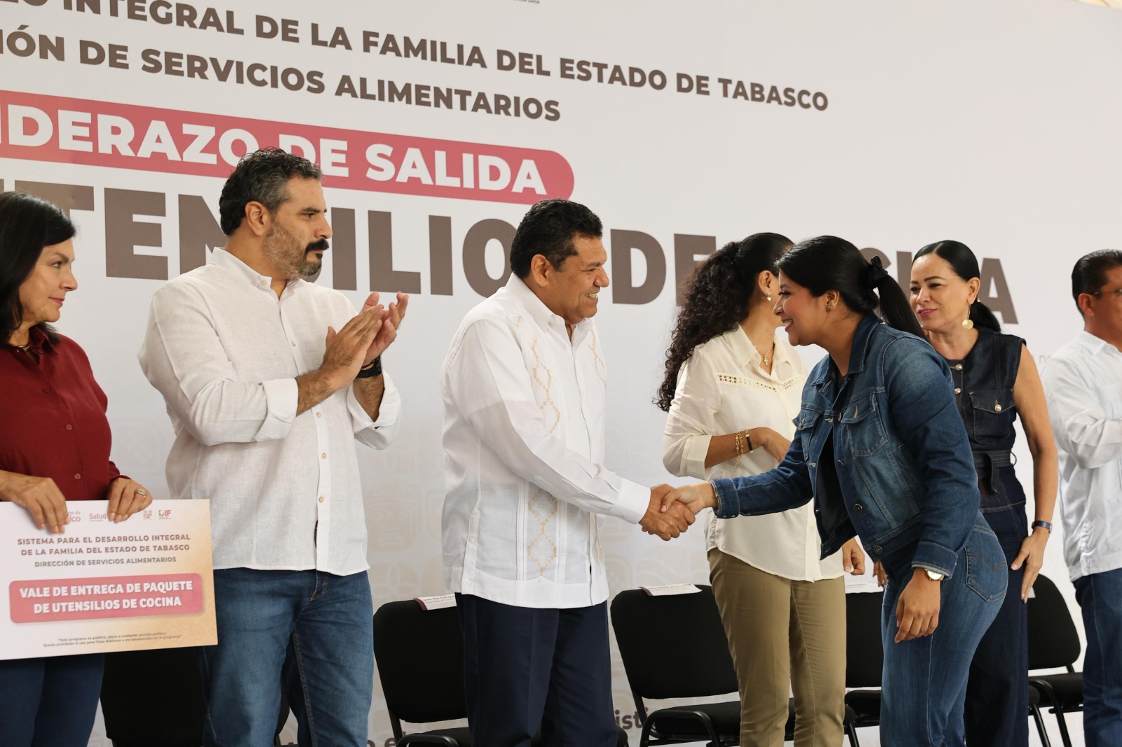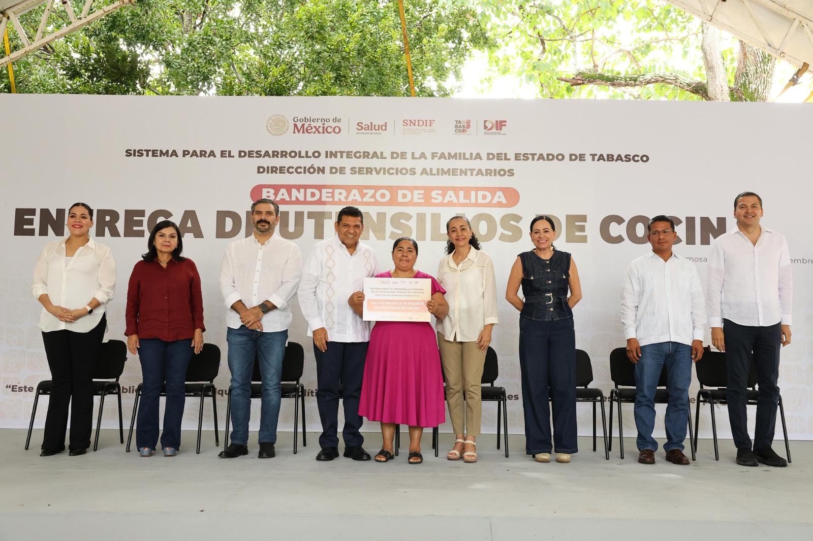 Al encabezar el banderazo de salida de entrega de utensilios de cocina para el programa de alimentación escolar en su modalidad caliente, coordinado por el DIF Tabasco, el mandatario estatal Javier May Rodríguez, afirmó que una buena alimentación es una condición indispensable para el aprendizaje, por lo que con estas acciones el Gobierno del Pueblo reafirma su compromiso en favor de la niñez tabasqueña y la educación en el estado.