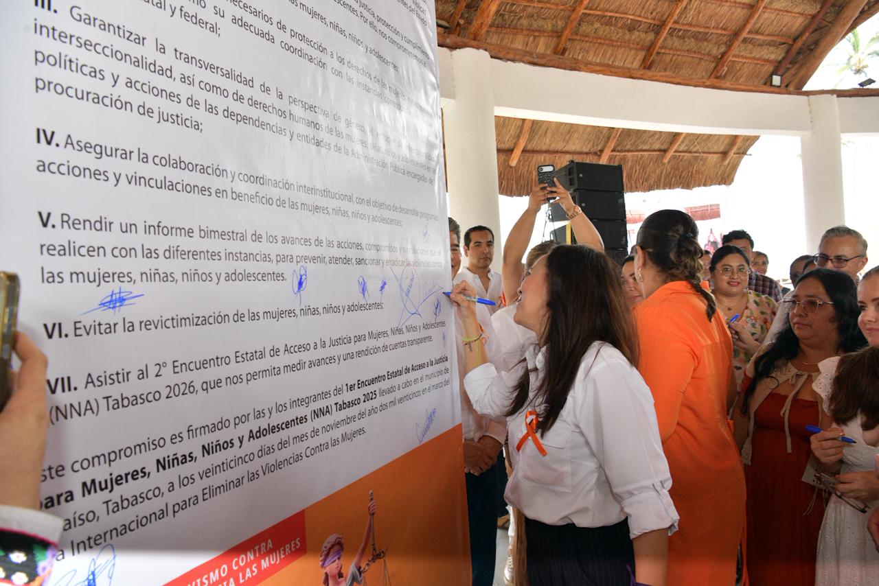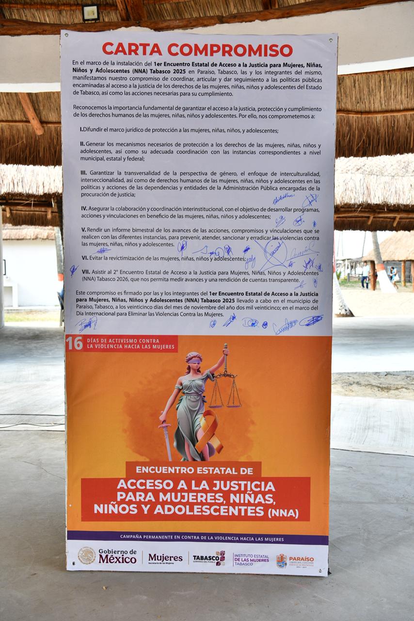 Con el objetivo de construir rutas más efectivas, humanas y accesibles para prevenir, atender, sancionar y erradicar las violencias, el Instituto Estatal de las Mujeres (IEM) realizó el Primer Encuentro Estatal de Acceso a la Justicia para Mujeres, Niñas, Niños y Adolescentes Tabasco 2025, en cuyo marco reafirmó el compromiso del Gobierno del Pueblo con la vida, la dignidad y los derechos humanos de las mujeres, niñas, niños y adolescentes de Tabasco.