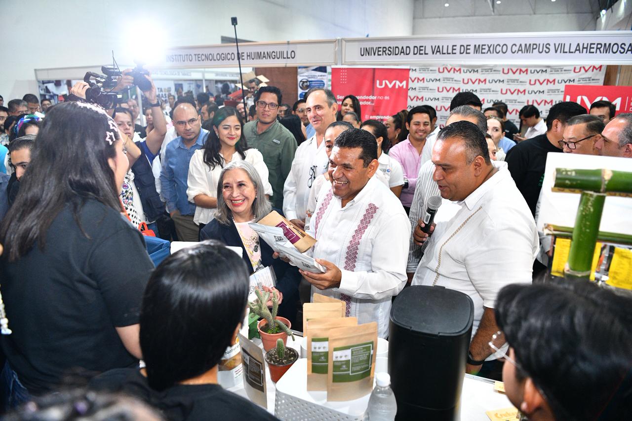 Junto a la presidenta honoraria del Sistema DIF Tabasco, Aurora Raleigh de la Cruz, celebró que esta edición incluya un Plan de Negocios Universitarios, una iniciativa que impulsa el espíritu emprendedor de las juventudes. “Sin duda, las y los jóvenes representan el futuro de la industria, pero también del estado y del país”, precisó.