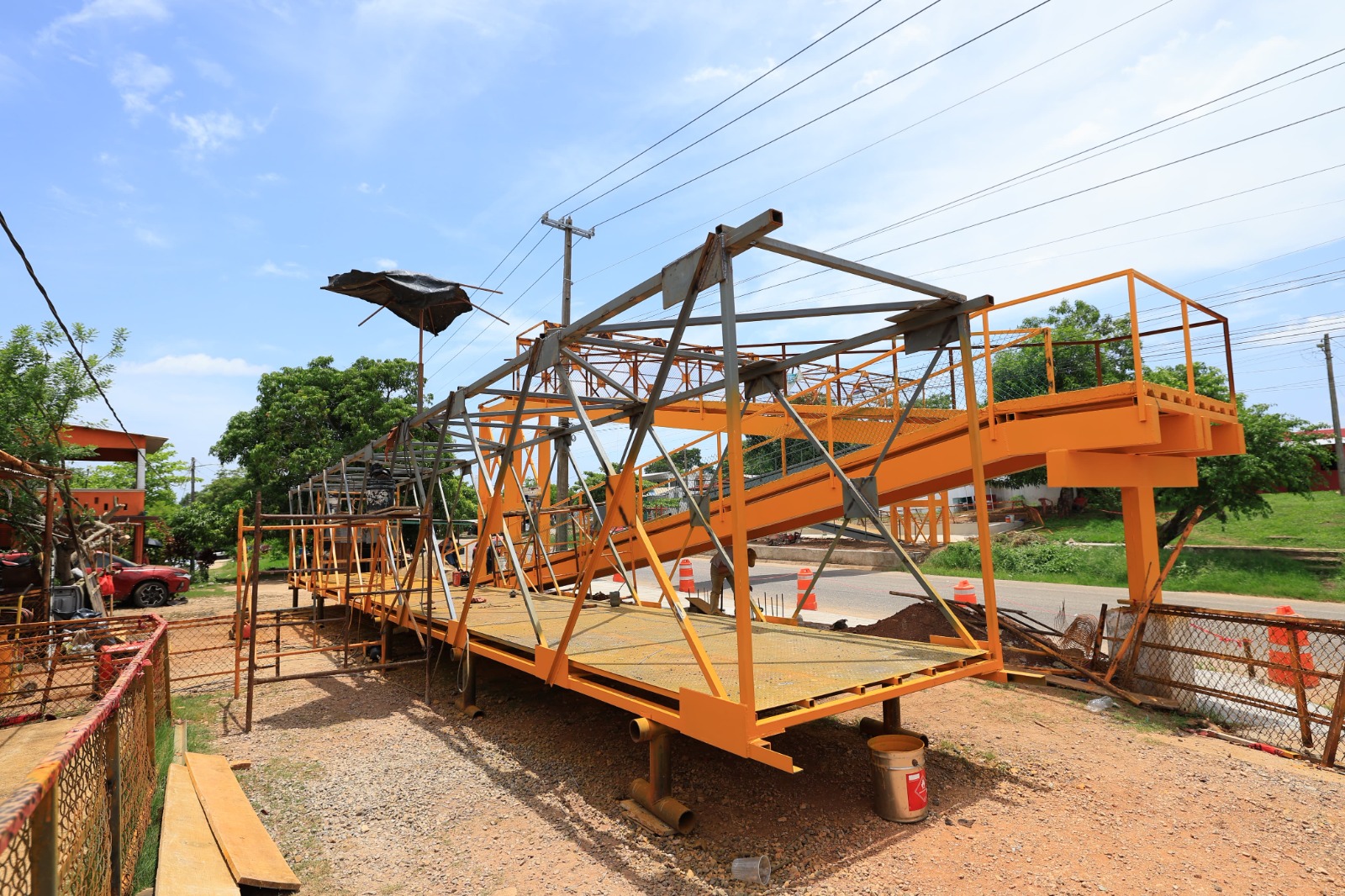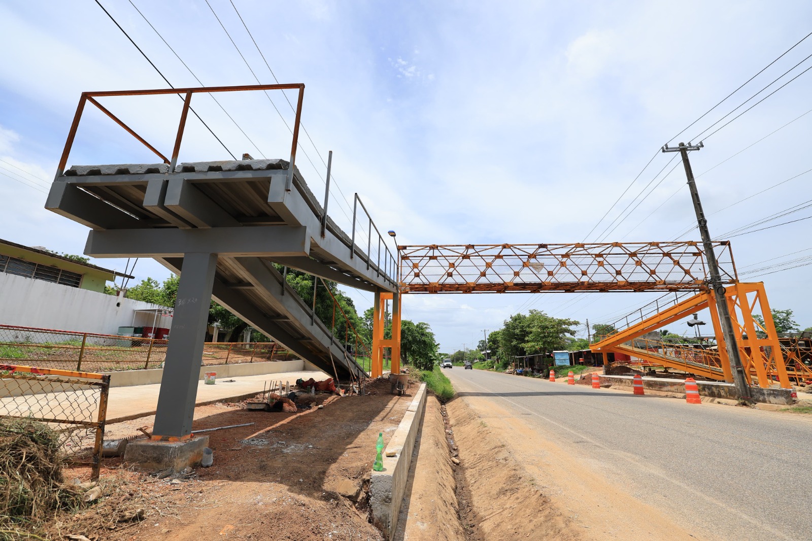 Con el objetivo de garantizar la seguridad vial y el correcto tránsito de la población en la zona, el Gobierno del Pueblo que encabeza Javier May Rodríguez, a través de la Junta Estatal de Camino (JEC) lleva a cabo la rehabilitación del puente peatonal metálico ubicado en la colonia La Agraria del municipio de Centro, en el camino Playas del Rosario-Oxolotán.