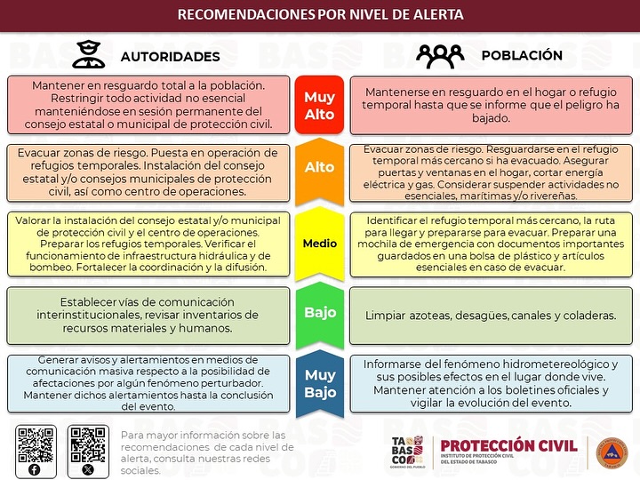De manera preventiva, se recomienda a la población mantenerse informada a través de los canales oficiales, evitar actividades en las márgenes de los ríos y extremar precauciones en zonas bajas.