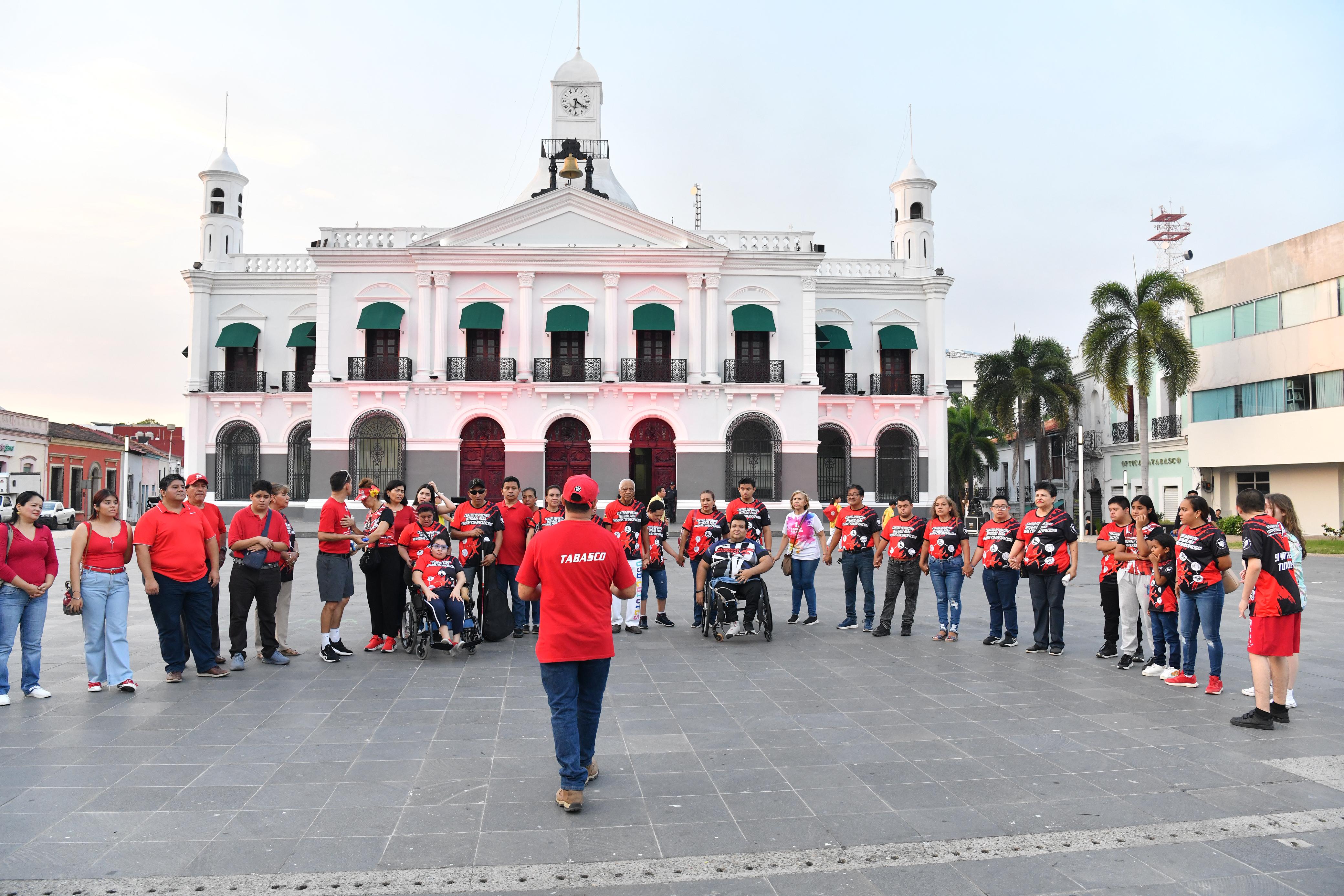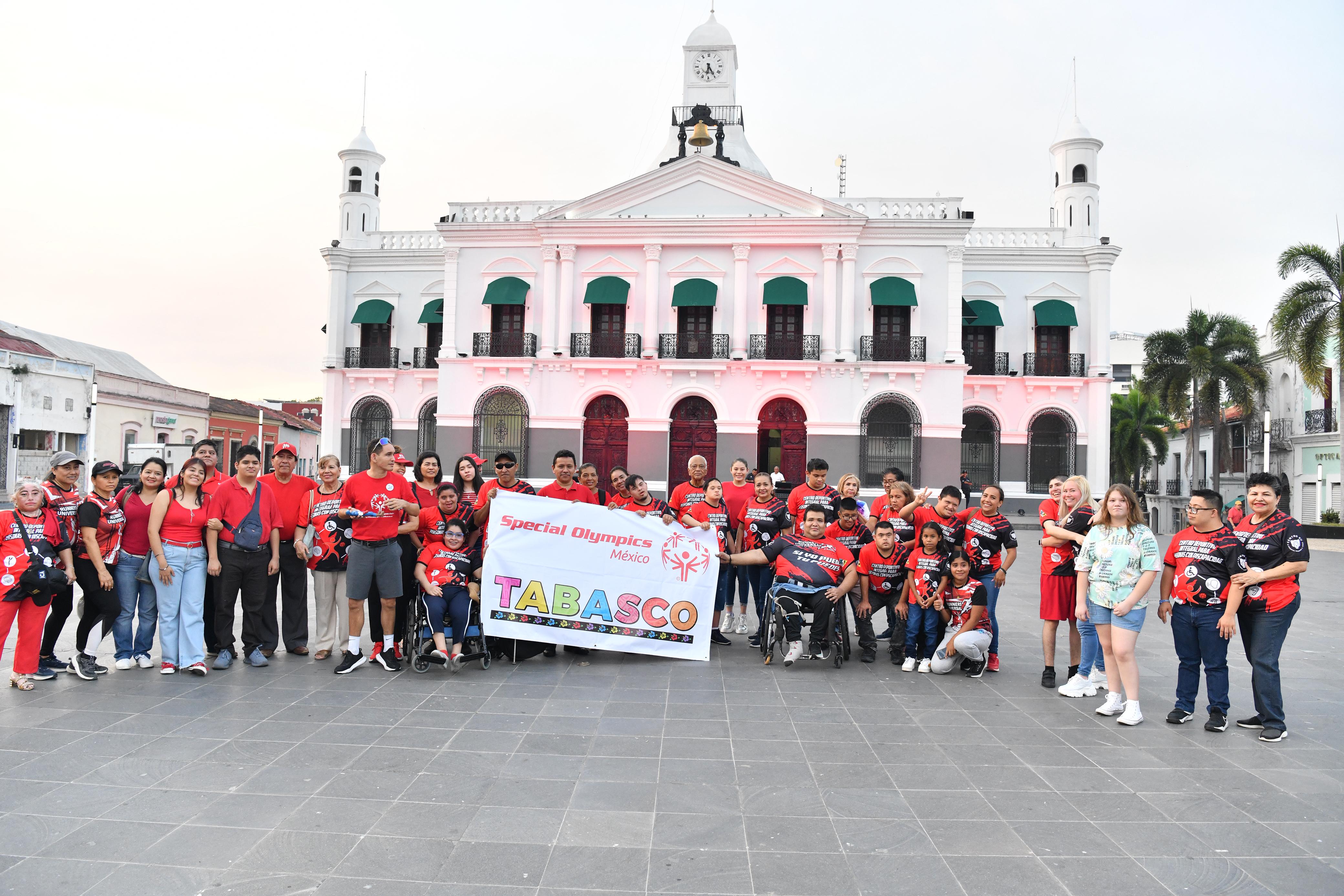Teniendo como fondo el Palacio de Gobierno que se iluminó de color rojo, el director del programa de Olimpiadas Special Olympics México, capítulo Tabasco, Juan Miguel Bautista Juárez, explicó que la conmemoración se realiza de manera simultánea en más de 200 países, y tiene la ardua tarea de incluir a todas las personas a la sociedad, y no solamente a quienes tienen alguna discapacidad, sino a todas en general.