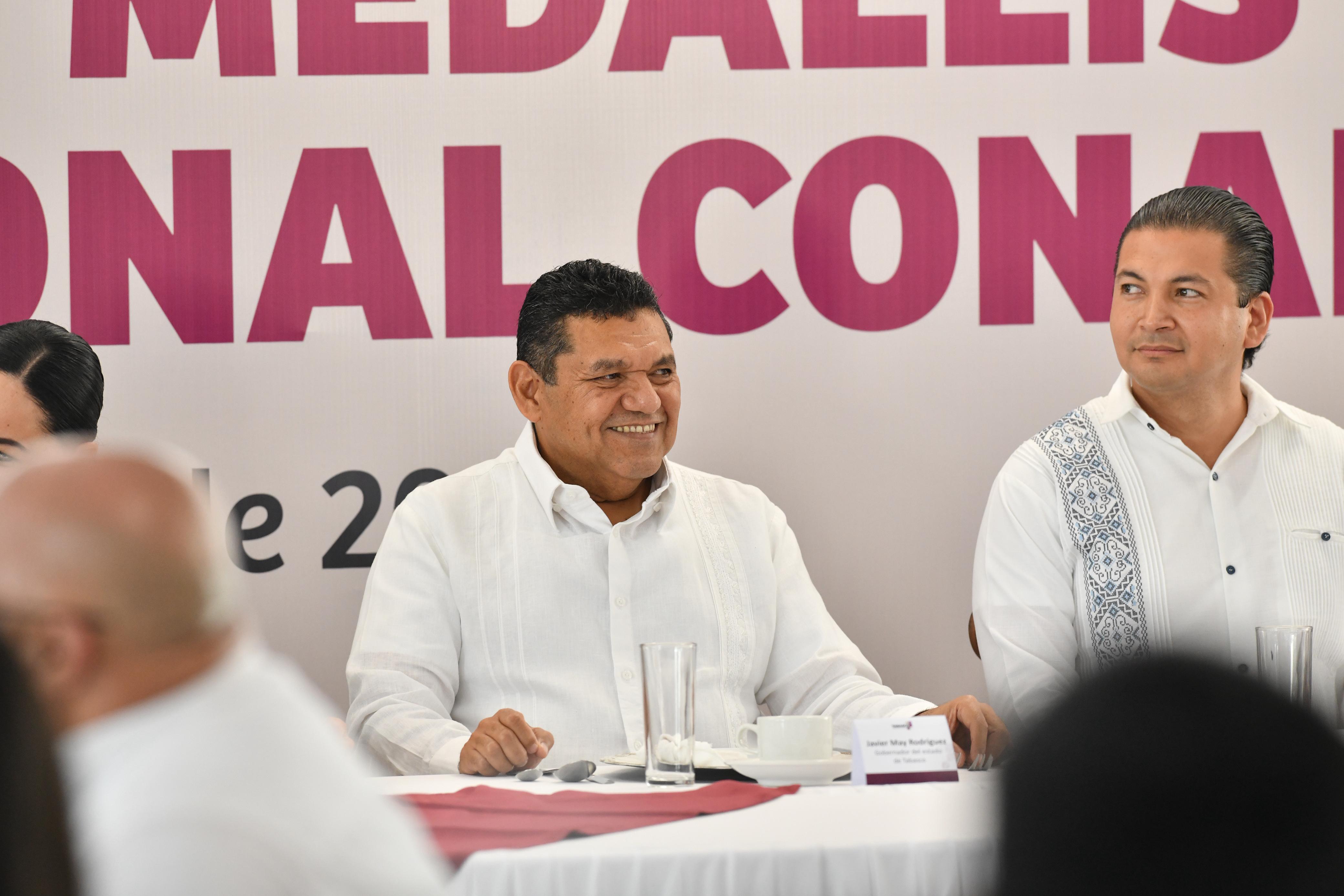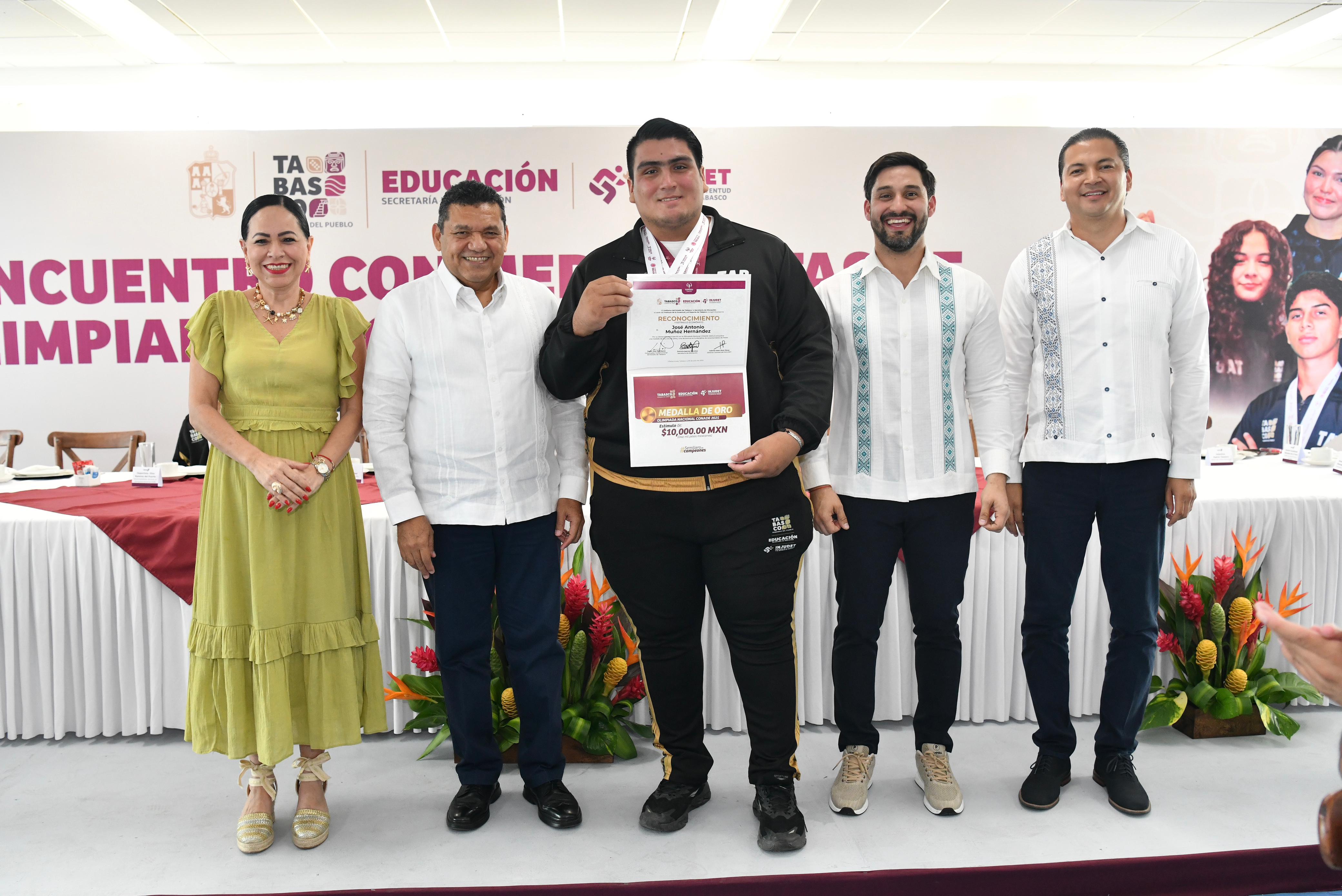 “Hoy nos reúne el orgullo de reconocer a nuestras y a nuestros medallistas de la Olimpiada Nacional Conade 2025, quienes con disciplina y pasión han escrito una página dorada en la historia deportiva de Tabasco”, aseguró May Rodríguez en compañía de la secretaria de Educación, Patricia Iparrea Sánchez y el titular del Instituto Nacional de la Juventud y el Deporte de Tabasco (Injudet), Gabriel Isaac Ruiz Pérez.