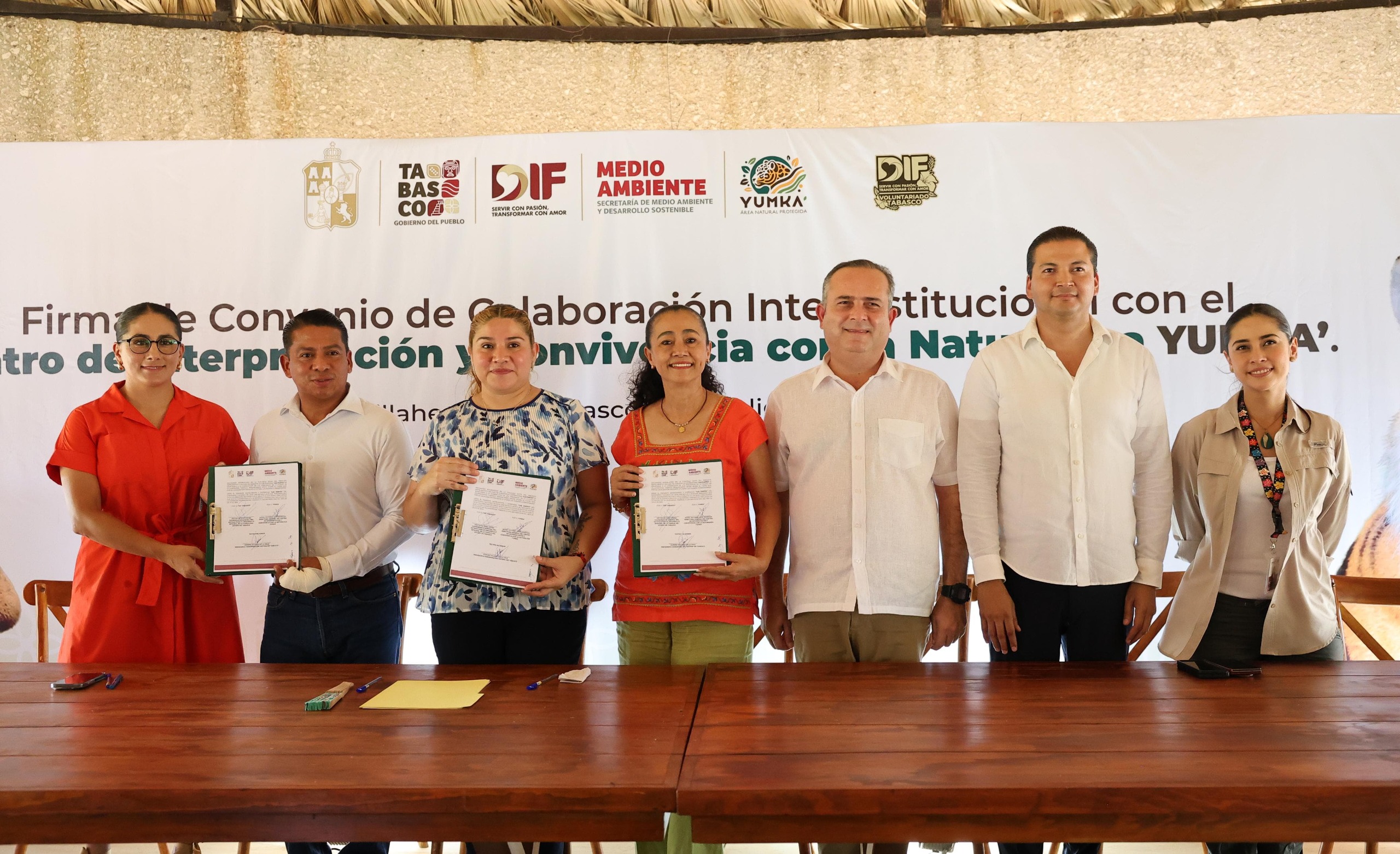 En beneficio de usuarias y usuarios de centros asistenciales, trabajadores, estudiantes y sus familias, el Sistema DIF Tabasco y el Centro de Interpretación y Convivencia con la Naturaleza Yumka’ firmaron un convenio de colaboración que permitirá otorgar descuentos en la entrada a esta importante Área Natural Protegida (ANP).