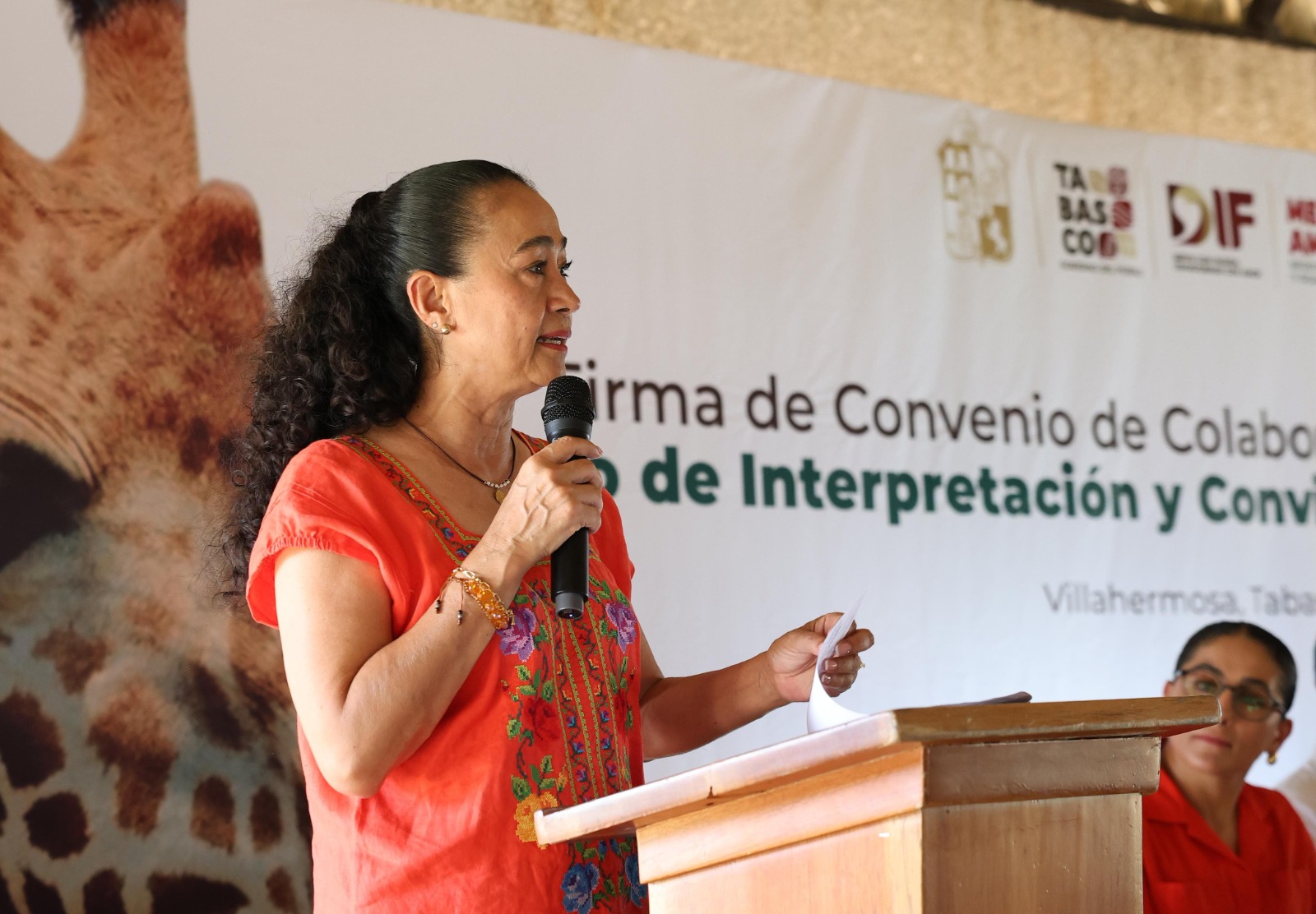 Al signar el documento, la presidenta honoraria del Sistema DIF Tabasco, Aurora Raleigh de la Cruz resaltó el valioso esfuerzo de colaboración interinstitucional que permitirá a las y los beneficiarios, disfrutar de dichas instalaciones y pasar gratos momentos de convivencia y sano esparcimiento, rodeados de la vegetación y fauna que aquí se encuentra resguardada y protegida.