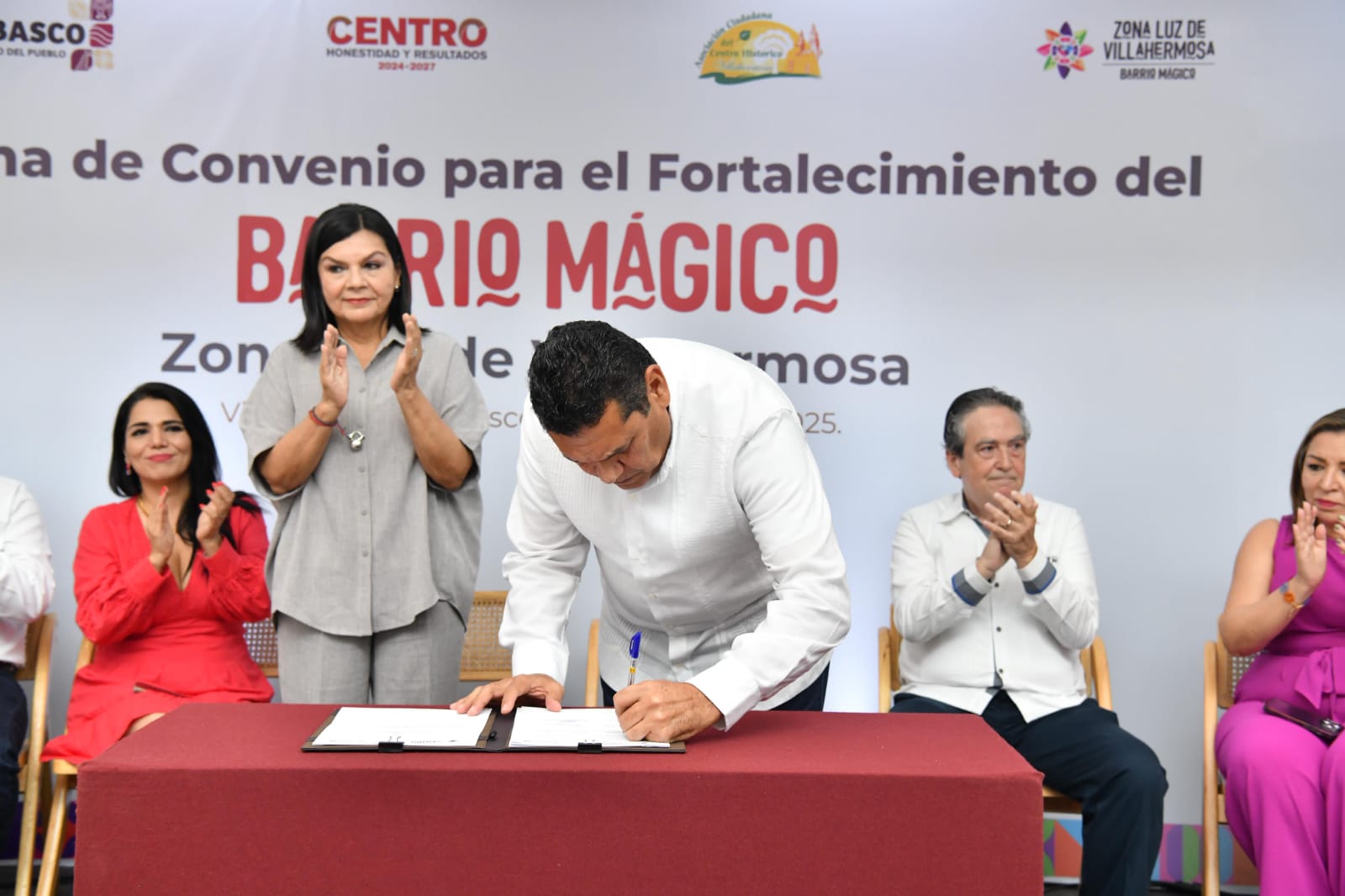 Con el objetivo de impulsar el desarrollo económico, turístico y social del centro histórico de Villahermosa, declarado hace dos años como Barrio Mágico, el Gobierno del Pueblo y el Ayuntamiento de Centro, firmaron un Convenio General de Colaboración, que además busca preservar la riqueza cultural y patrimonial de esta zona.