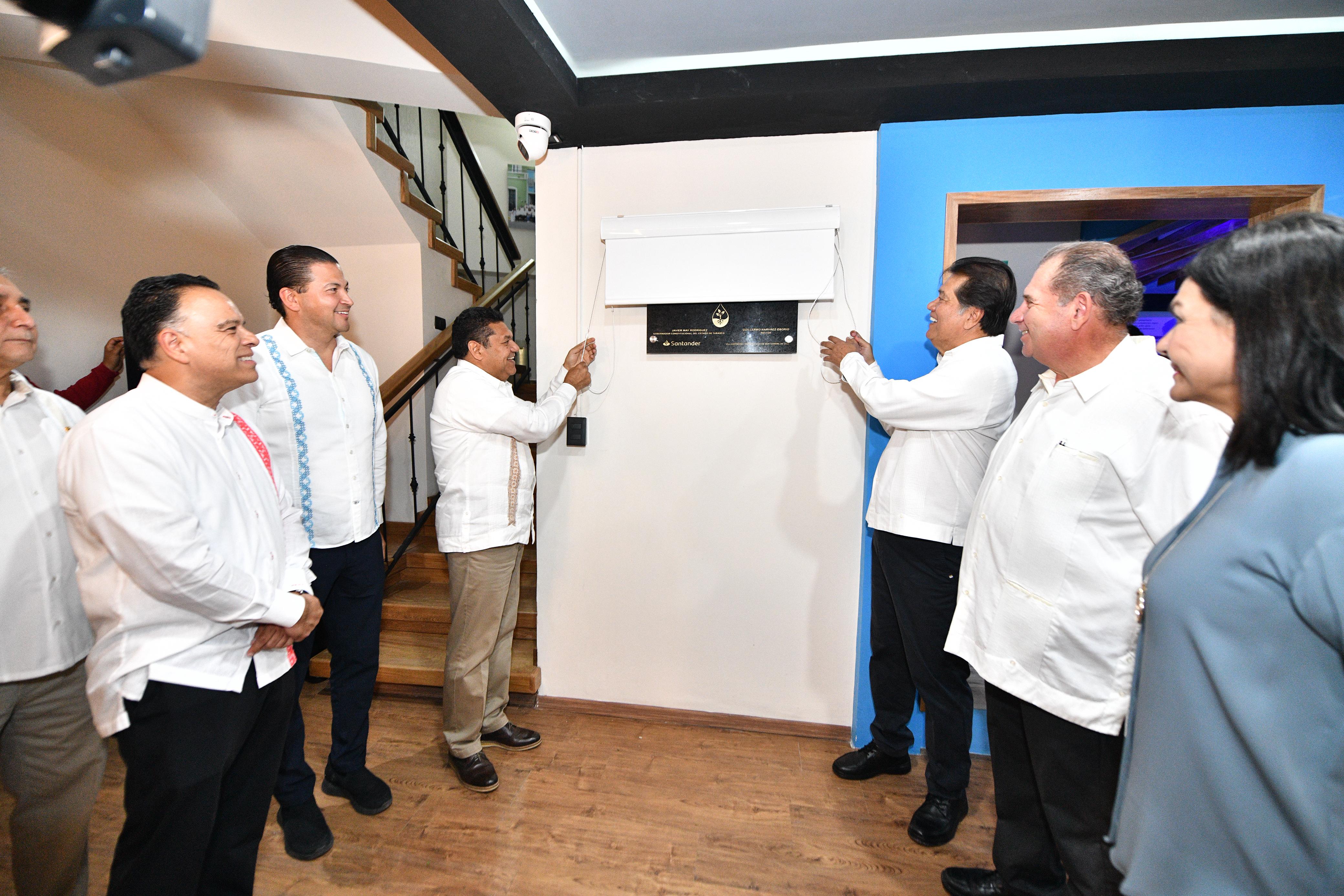 Con el rector de la UJAT, Guillermo Narváez Osorio, la alcaldesa Yolanda Osuna Huerta, y el presidente de la mesa directiva del Congreso del Estado, Marcos Rosendo Medina Filigrana, así como el titular de la Junta de Coordinación Política (Jucopo), Jorge Orlando Bracamonte Hernández, el jefe del Ejecutivo develó la placa alusiva a la apertura del nuevo centro del conocimiento, y recorrió sus salas de exhibiciones.