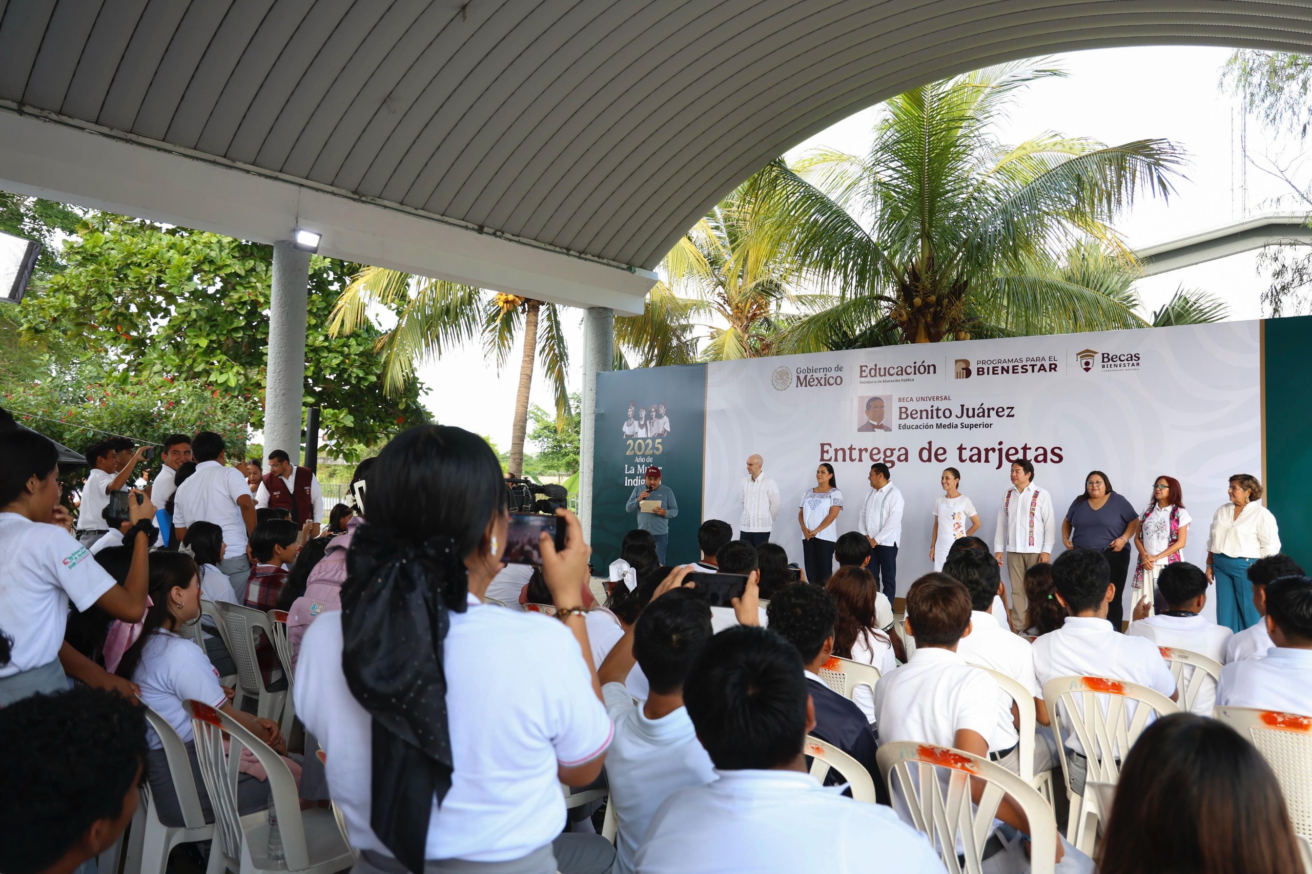 Recordó que la beca Benito Juárez para las y los estudiantes de preparatoria es gracias a que hubo una transformación pacífica en México, por ello hay un gobierno que piensa en las y los jóvenes, además de que se otorga la nueva beca Rita Cetina para alumnas y alumnos de educación básica.