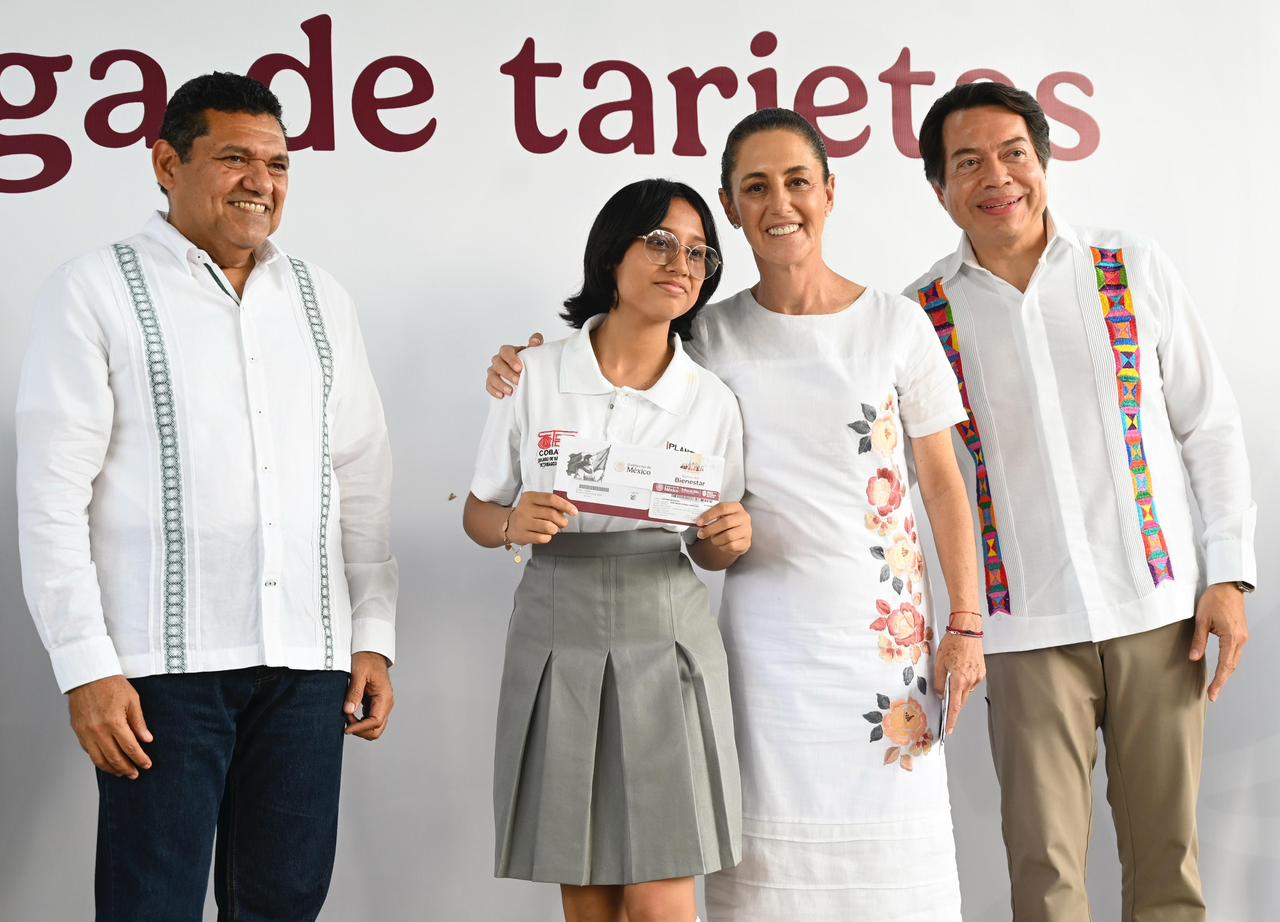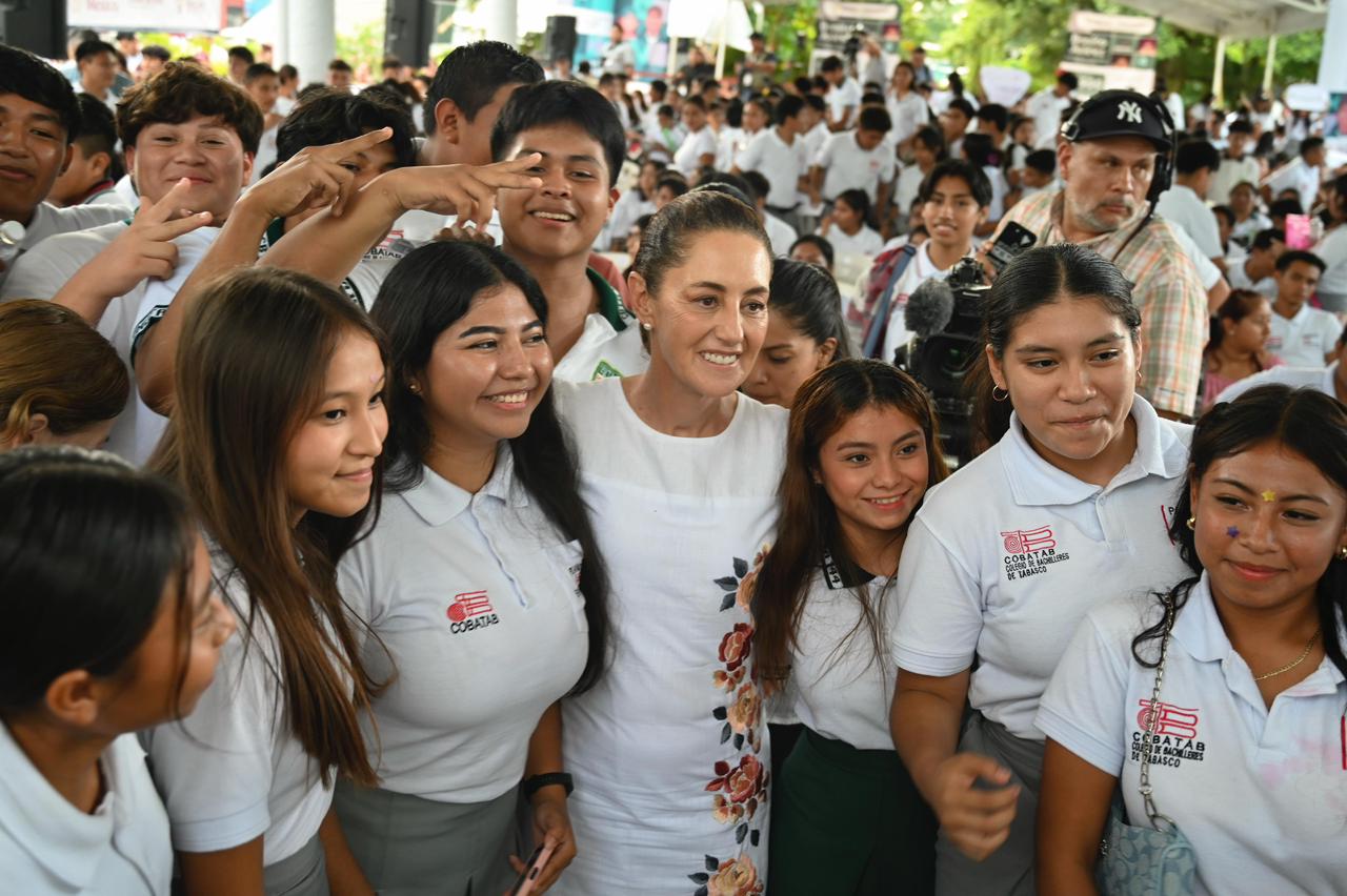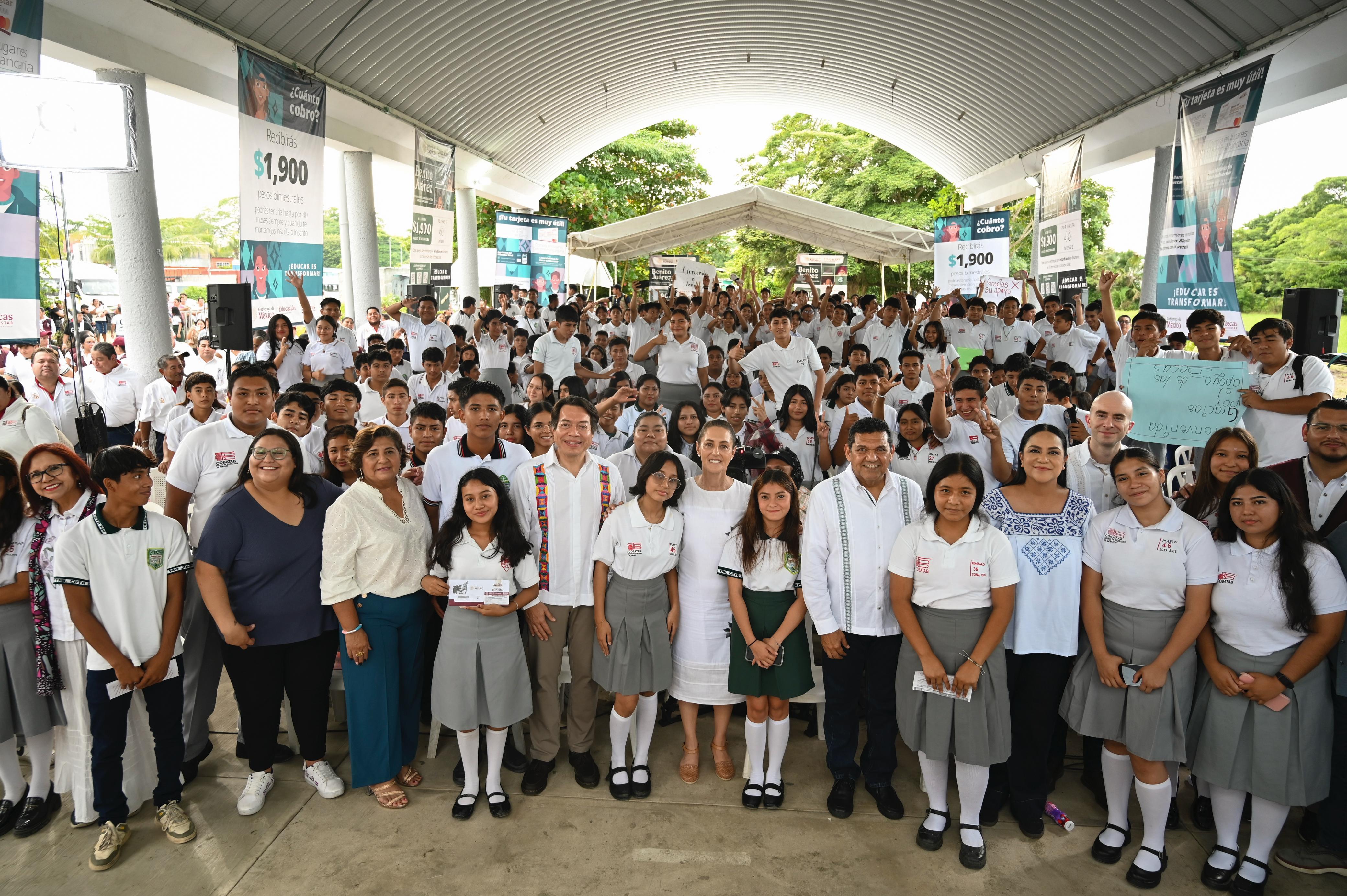 El secretario de Educación Pública, Mario Delgado Carrillo, recordó la lucha de la Presidenta para garantizar el acceso a la educación gratuita desde que era estudiante de preparatoria y que hoy, como Presidenta, se ve materializada con la continuidad de la beca Benito Juárez en beneficio de más de 4 millones de estudiantes de preparatoria en el país, 100 mil de ellos de Tabasco, que se va a sumar a las y los estudiantes de secundaria que ya reciben la beca Rita Cetina y 140 mil más de primaria para sumar más de 500 mil en esta entidad.